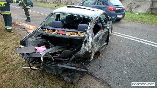 Kierowca i osiemnastoletni pasażer doznali ogólnych potłuczeń. Obrażeń ciała powyżej siedmiu dni doznał drugi z pasażerów – szesnastoletni mieszkaniec Kościana. Sprawcy wypadku zatrzymano prawo jazdy.