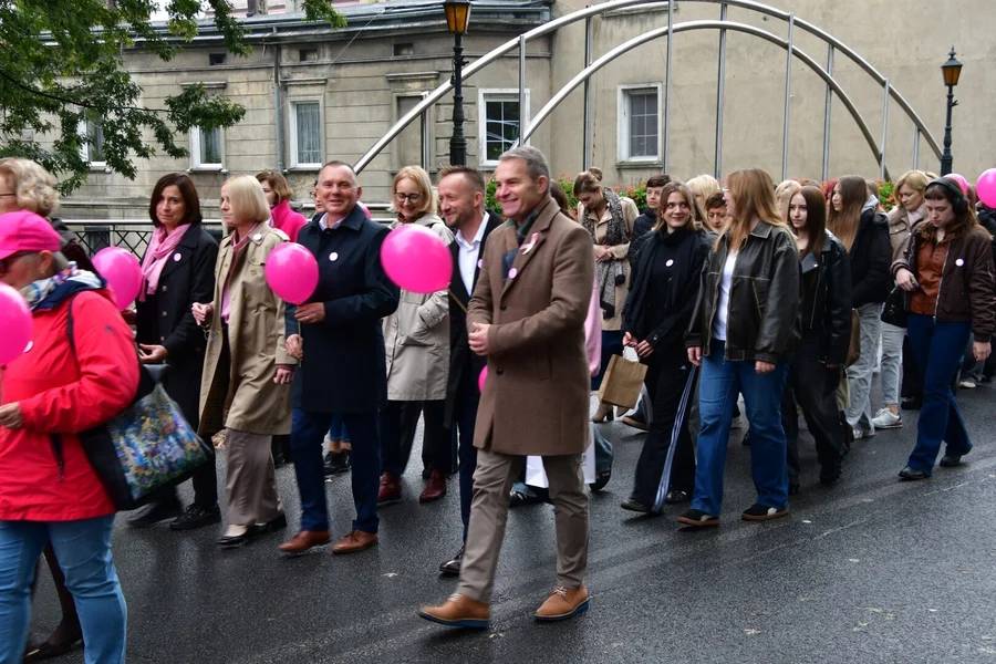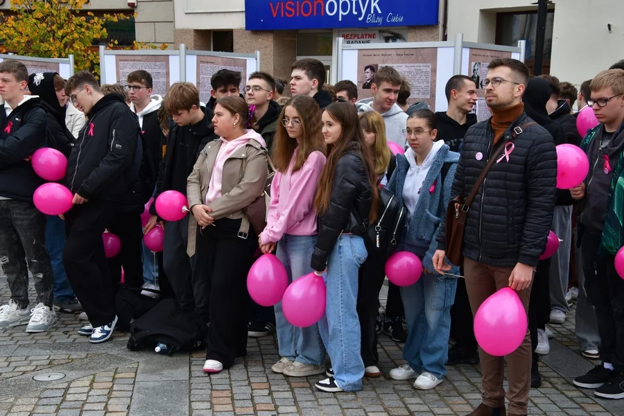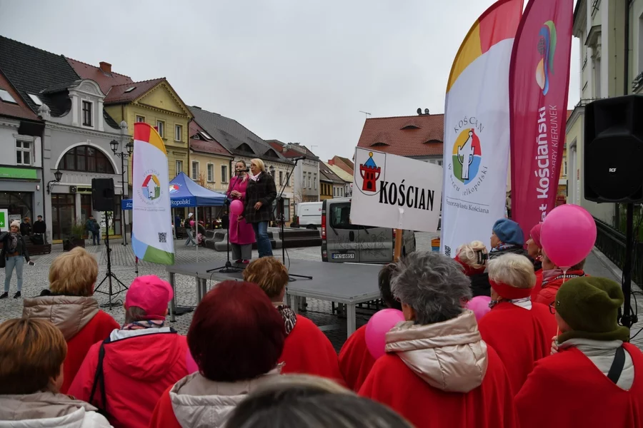 Na rynku uczestnicy mogli wysłuchać wystąpień specjalistów z SP ZOZ w Kościanie, którzy przypomnieli o rosnącej liczbie zachorowań na nowotwory, znaczeniu regularnych badań profilaktycznych i roli samokontroli w wczesnym wykrywaniu raka piersi.