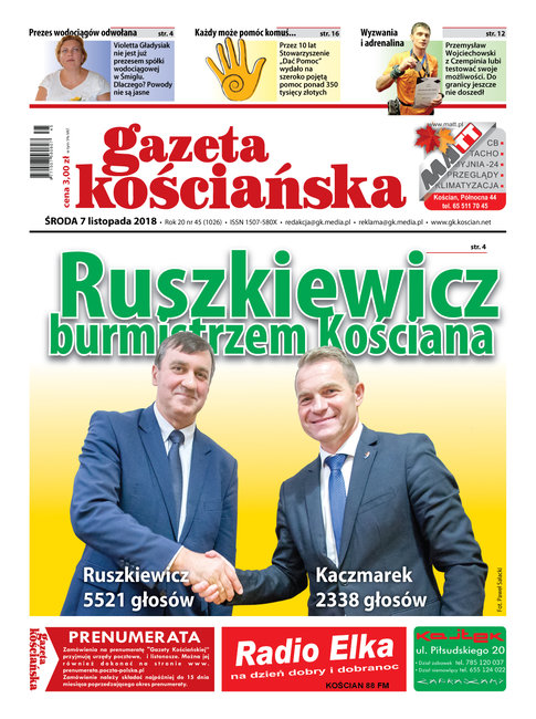 Ponadto: ilustrowany przegląd wydarzeń tygodnia z wszystkich gmin powiatu kościańskiego, kronika policyjna, informator kulturalny i obszerny serwis sportowy. Gazeta w sprzedaży od 7 listopada 2018 r.