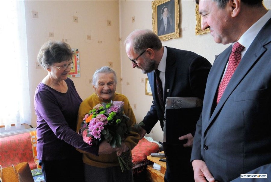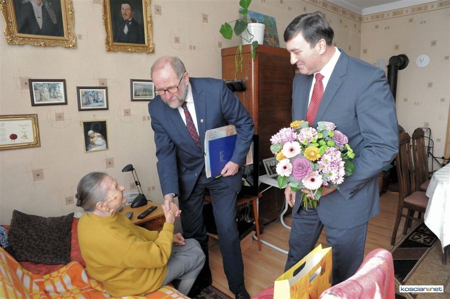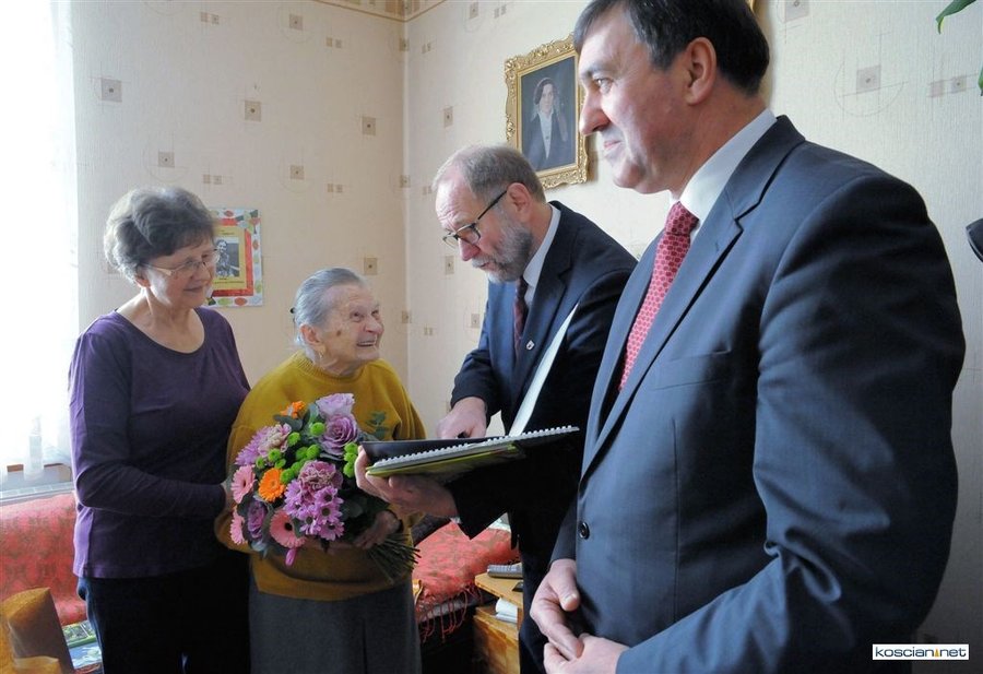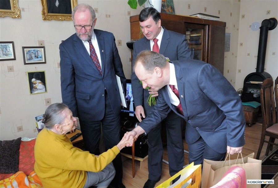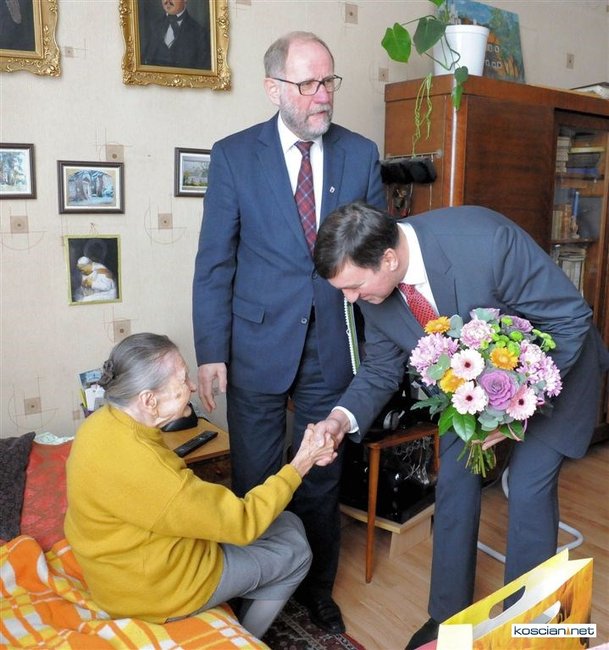 Życzenia w imieniu władz miasta złożyli jubilatce burmistrz Michał Jurga, przewodniczący miejskiej rady Piotr Ruszkiewicz i wiceprzewodniczący rady Maciej Zielonka.