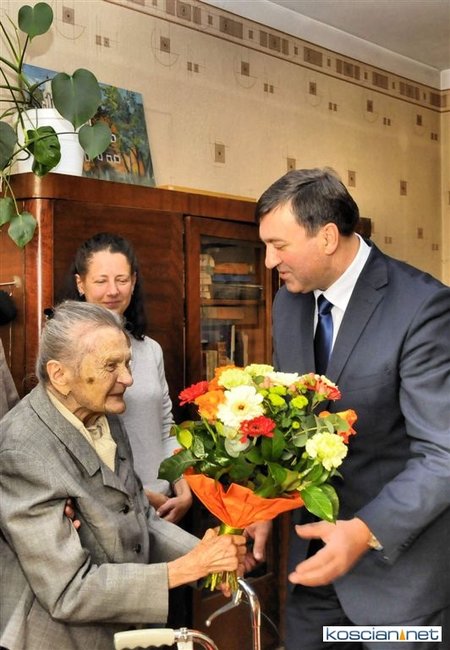 Życzenia w imieniu władz miasta złożyli jubilatce burmistrz Michał Jurga i przewodniczący miejskiej rady Piotr Ruszkiewicz.