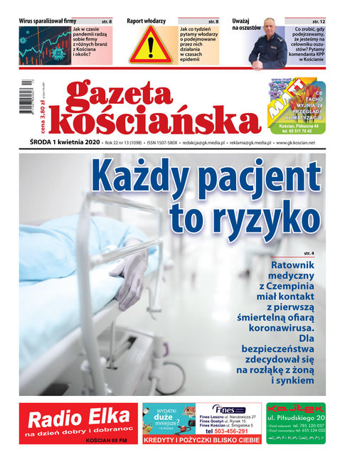 W numerze między innym: rozmawiamy z ratownikiem medyczny, który miał kontakt z pierwszą śmiertelną ofiarą kornawirusa, o kryzysie w lokalnych firmach spowodowanych epidemią, o akcjach wspierania kościańskiego szpitala, cotygodniowy raport włodarzy, o nowych cenach za wywóz śmieci, o kościańskim pszczelarzu i kowalu, rozmawiamy z komendantem policji o oszustach, prezentujemy Fundację z Marzeniami z Koszanowa, o budynku kina w Czempiniu. Ponadto ilustrowany przegląd wydarzeń tygodnia z wszystkich gmin powiatu kościańskiego i kronika policyjna. Gazeta w sprzedaży od 1 kwietnia