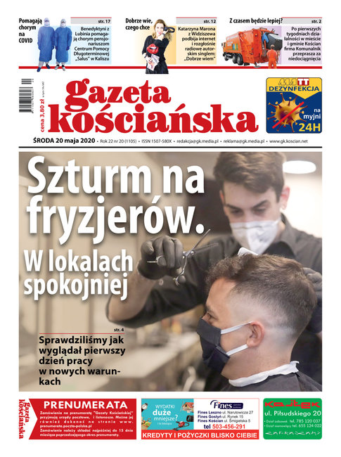 W numerze między innym: sprawdzamy jak wyglądał pierwszy dzień pracy w nowych warunkach w salonach fryzjerskich i gastronomii, o nowym singlu Katarzyny Marony z Widziszewa, o benedyktynach z Lubinia pomagającym seniorom chorym na COVID, o planowanej fuzji czempińskiej biblioteki z centrum kultury, o zwolnieniu kierownika racockiej stadniny, o tym jak firma Komunalnik radzi sobie z wywożeniem śmieci, o słynnej przed wojną szkole perfekcyjnych pań domu w Nietążkowie, o działaniach straży miejskiej oraz cotygodniowy raport włodarzy. Ponadto ilustrowany przegląd wydarzeń tygodnia z wszystkich gmin powiatu kościańskiego i kronika policyjna. Gazeta w sprzedaży od 20 maja
