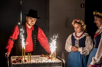 Po części oficjalnej rozpoczęły się konkursowe prezentacje, które ponownie udowodniły, że muzyka dudziarska ma się dobrze i znajduje młodych pasjonatów. Na zakończenie jubileuszowego spotkania na wszystkich czekała jeszcze słodka niespodzianka – okazały tort jubileuszowy.
