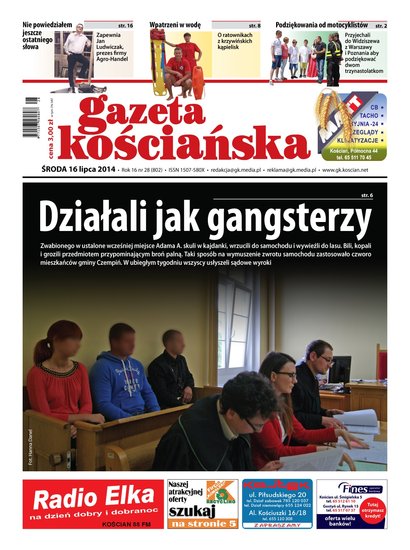 W GK między innymi: o gangsterskim pomyśle na odzyskanie przetrzymywanego auta, o motocyklistach dziękujących chłopakom z Widziszewa, o tym czy w kościańskim domu kultury rzeczywiście nic się nie dzieje, o ratownikach z krzywińskich kąpielisk, o zeznaniach rodziców w procesie śmigielskiego nauczyciela, o pasji Stanisława Wujca, o gawędach Antoniny Gulik, rozmowa o biznesie i sporcie z Janem Ludowiczakiem, o kościańskim osiedlu Gurostwo. Ponadto: bogato ilustrowany przegląd wydarzeń minionego tygodnia, kronika policyjna i obszerny lokalny serwis sportowy. Gazeta w sprzedaży od 16 lipca