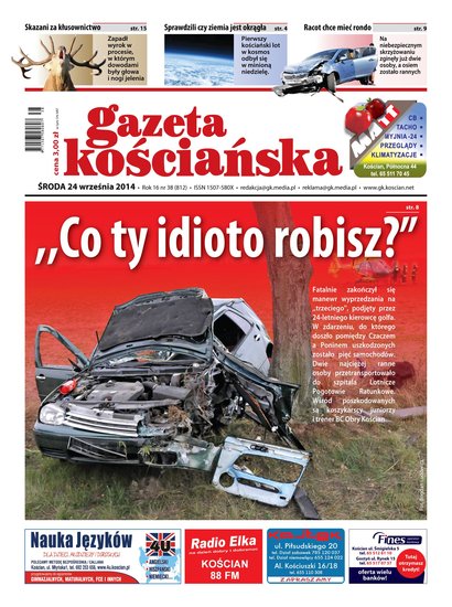 W GK między innymi: o wypadku, w którym ucierpieli kościańscy koszykarze; o skazaniu kłusowników; o parku handlowym w Kościanie; o pierwszym kościańskim locie w kosmos; o wyborczej ofercie Porozumienia Ziemia Kościańska; o biegaczu walczącym o koronę wielkopolskich półmaratonów; o niezwykłym leśniczym i jego książkach; o wandalach i kłopotach z zastawianiem wjazdów na posesje. Ponadto: ilustrowany przegląd wydarzeń minionego tygodnia, kronika policyjna i obszerny lokalny serwis sportowy. Gazeta w sprzedaży od 24 września