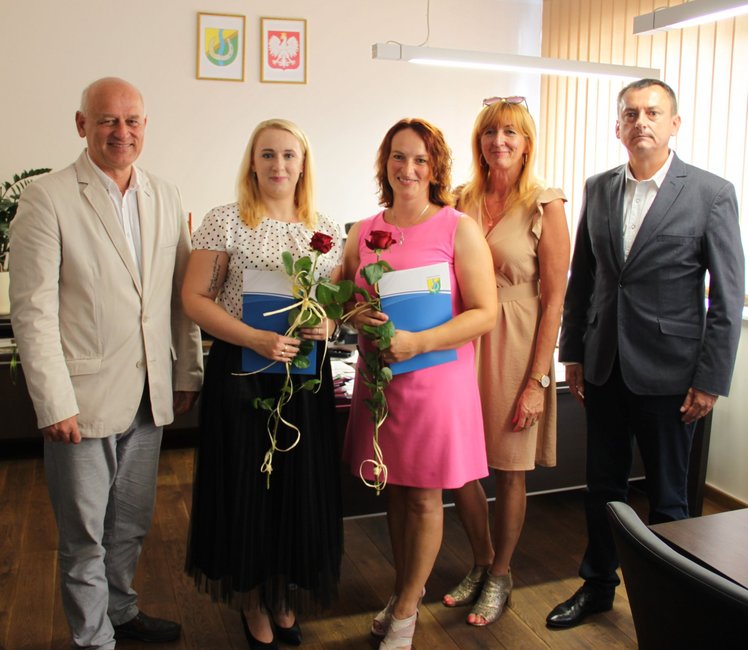 Po blisko trzyletnim stażu zakończonym egzaminem dwie nauczycielki szkół gminy Kościan: Joanna Matuszewska – nauczycielka języka angielskiego w Zespole Szkół w Racocie i Anna Podbylska – nauczycielka języka polskiego w Zespole Szkół w Starych Oborzyskach odebrały z rąk wójta Andrzeja Przybyły akty nadania stopnia awansu zawodowego na stopień nauczyciela mianowanego.