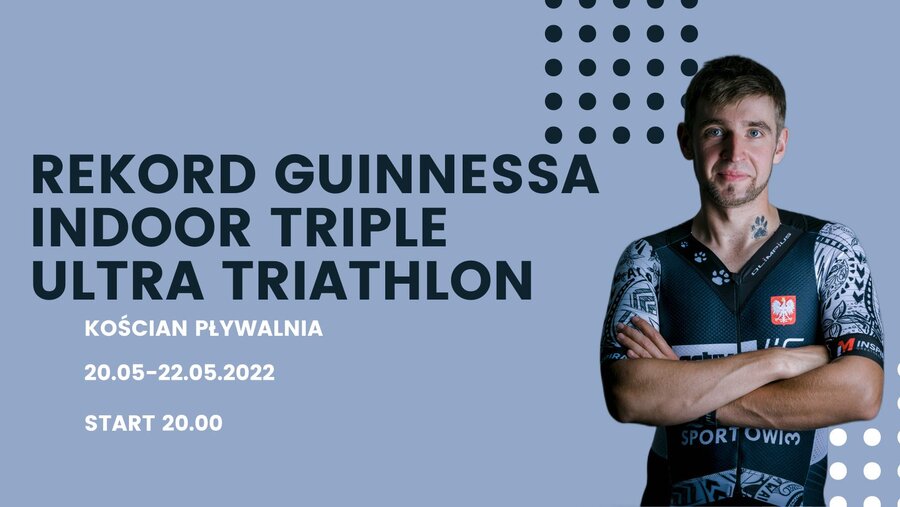W piątek, 20 maja, podejmie próbę ustanowienia rekordu Guinnessa w potrójnym Ironmanie na hali. Miejscem bicia rekordu będzie kryta pływalnia w Kościanie.