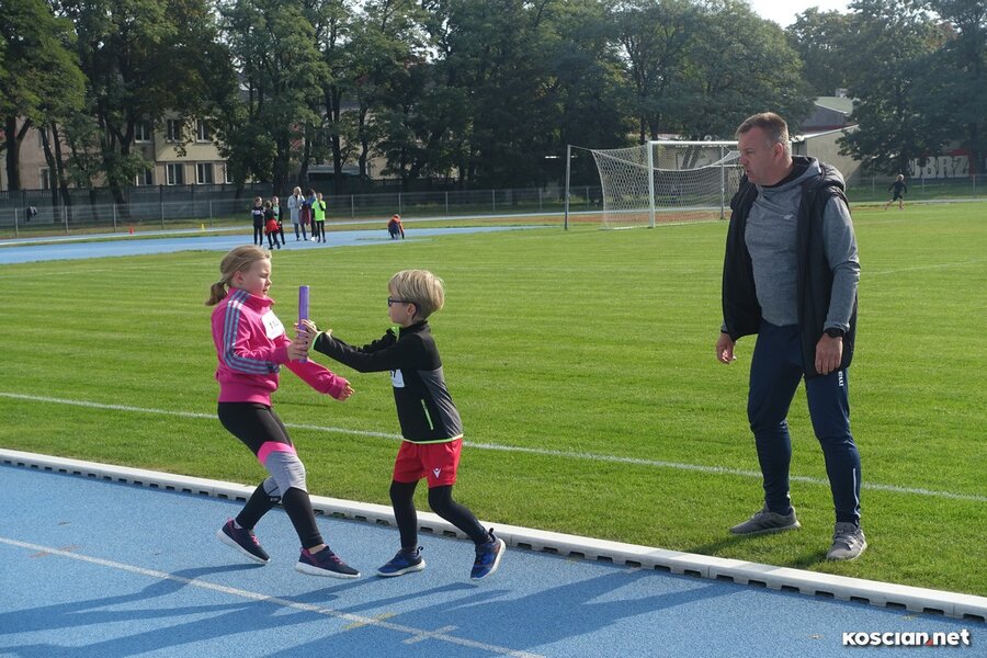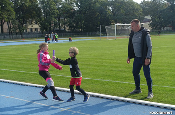 Jako pierwsi zmagania sztafetowe rozpoczęli uczniowie klas 1-3. Po zakończonym biegu uczestnicy otrzymywali specjalnie na tę okazję przygotowane medale. Dekoracji dokonał burmistrz, dyrektor, przedstawiciele Rady Rodziców i absolwentka „czwórki”, - była przewodnicząca Samorządu Uczniowskiego Maja Józefowska.