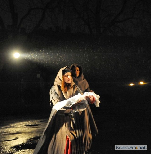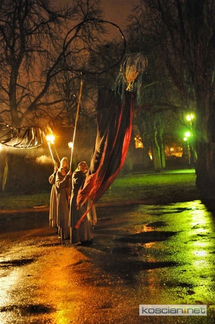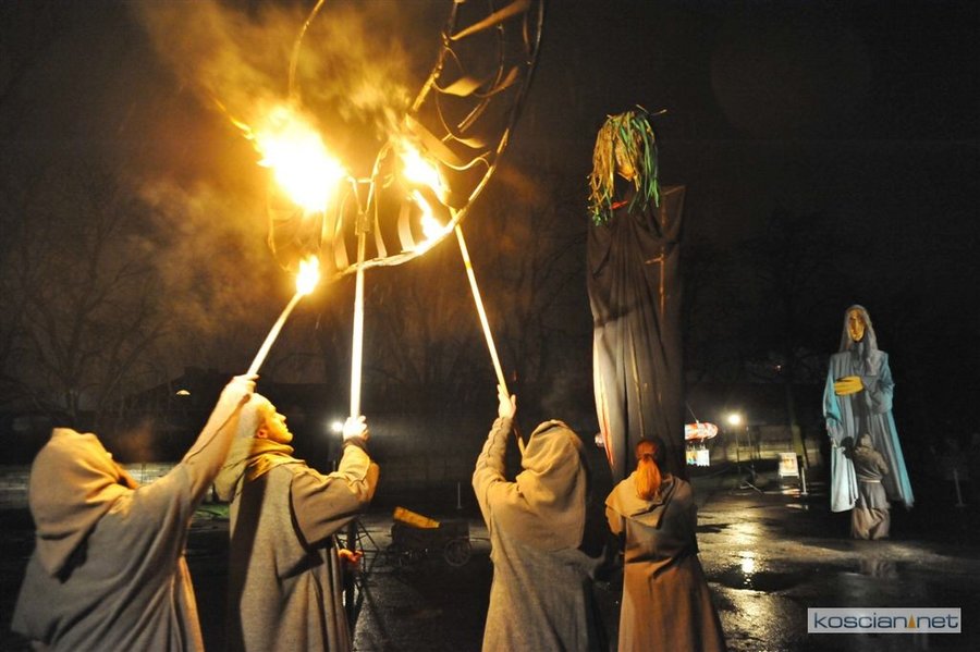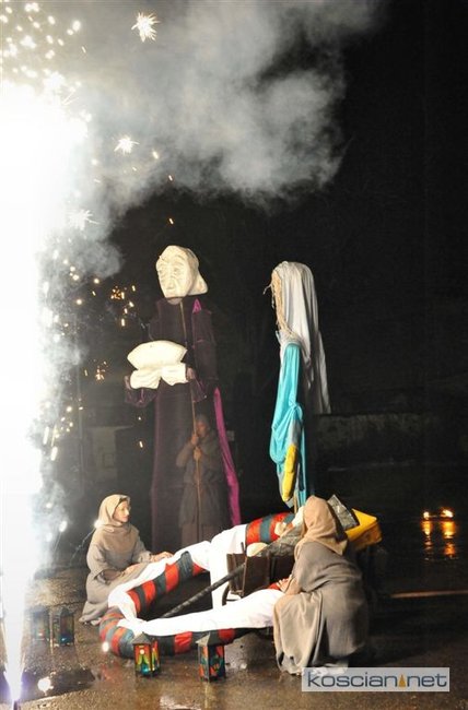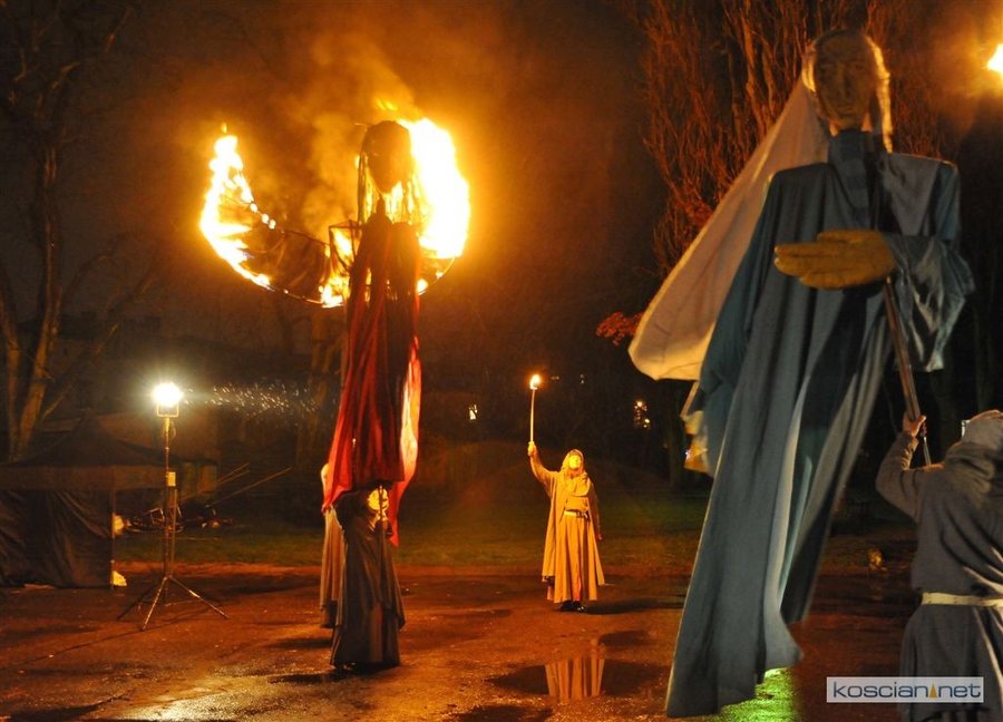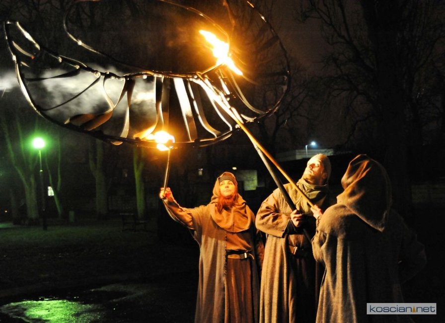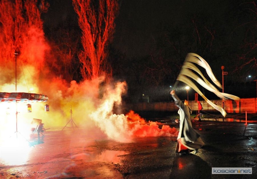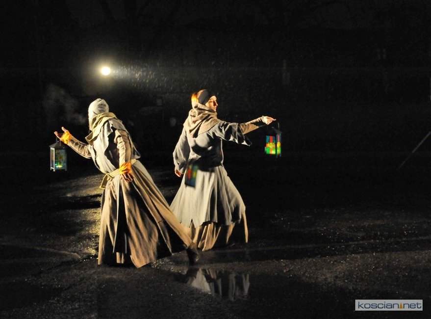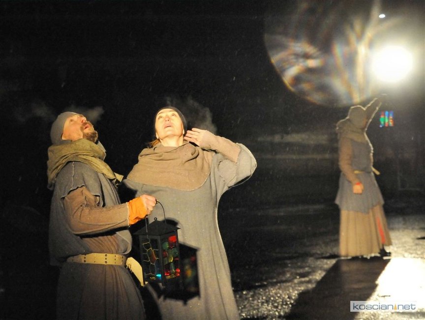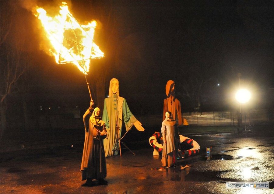 W piątkowy wieczór, w parku przy Kościańskim Ośrodku Kultury teatr „A" wystawił plenerowe widowisko pt. ,,Kolaż Bożonarodzeniowy’’. Twórcy spektaklu opowiedzianego językiem teatru lalkowego i teatru tańca inspiracje czerpali z ludowych jasełek.