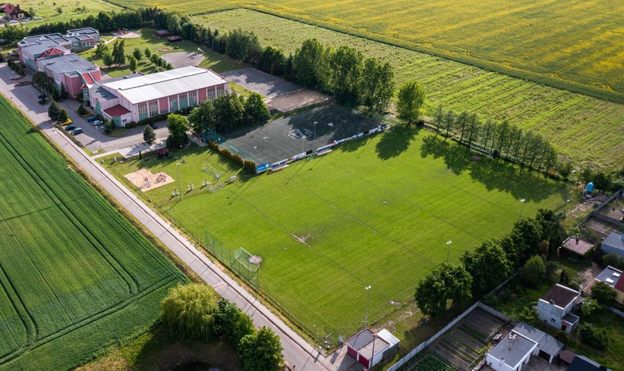 Projekt zakłada budowę pełnowymiarowego boiska z trawy naturalnej sianej. Będzie ono miało powierzchnię 7260 m kw. W ramach tego zadania wykonane zostanie też odwodnienie obiektu poprzez wykonanie drenażu opasowego wewnątrz boiska, nawodnienie płyty boiska poprzez montaż systemu zraszaczy wraz ze sterowaniem podlewania.