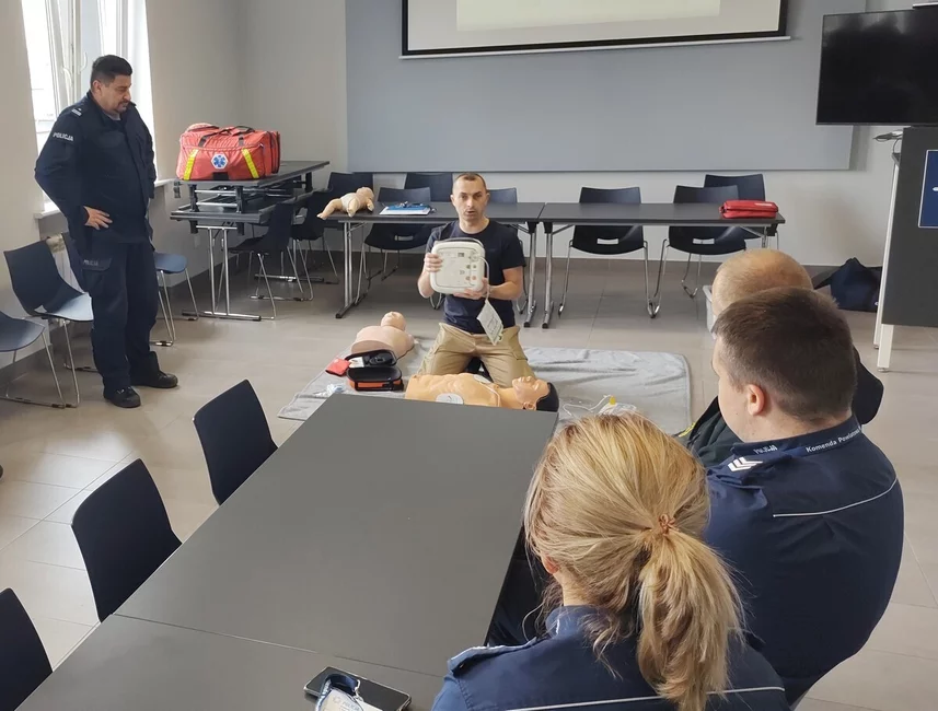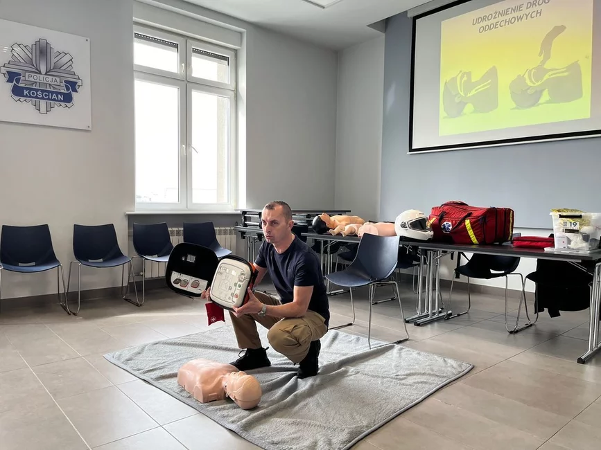 Wszyscy funkcjonariusze pełniących służbę na stanowisku dyżurnego wzięli udział w szkoleniu z udzielania pierwszej pomocy przedmedycznej oraz wykorzystania AED. Wiedzę teoretyczną oraz praktyczną przekazał instruktor pierwszej pomocy mł. asp. Mateusz Ciszak, który na co dzień jest funkcjonariuszem kościańskiej komendy, a także Ratownikiem WOPR w Lesznie.