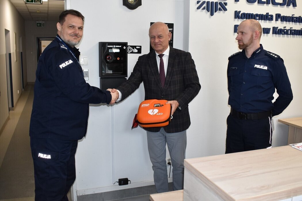 W środę, 24 kwietnia, wójt gminy Kościan Andrzej Przybyła przekazał na ręce Komendanta Powiatowego Policji w Kościanie mł. insp. Roberta Przyjemskiego automatyczny defibrylator zewnętrznego (AED) oraz samoobsługowy alkomat.