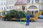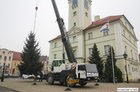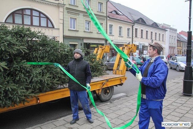Na Rynek choinka przyjechała w piątek, 5 grudnia, około godziny 10. Do pionu postawił ją dźwig firmy EWMAR, która od trzech lat bezpłatnie pomaga przy ustawianiu świątecznego drzewka. Pień fachowo przycięła i choinkę osadziła ekipa z Miejskiego Zakładu Gospodarki Mieszkaniowej i Dróg.