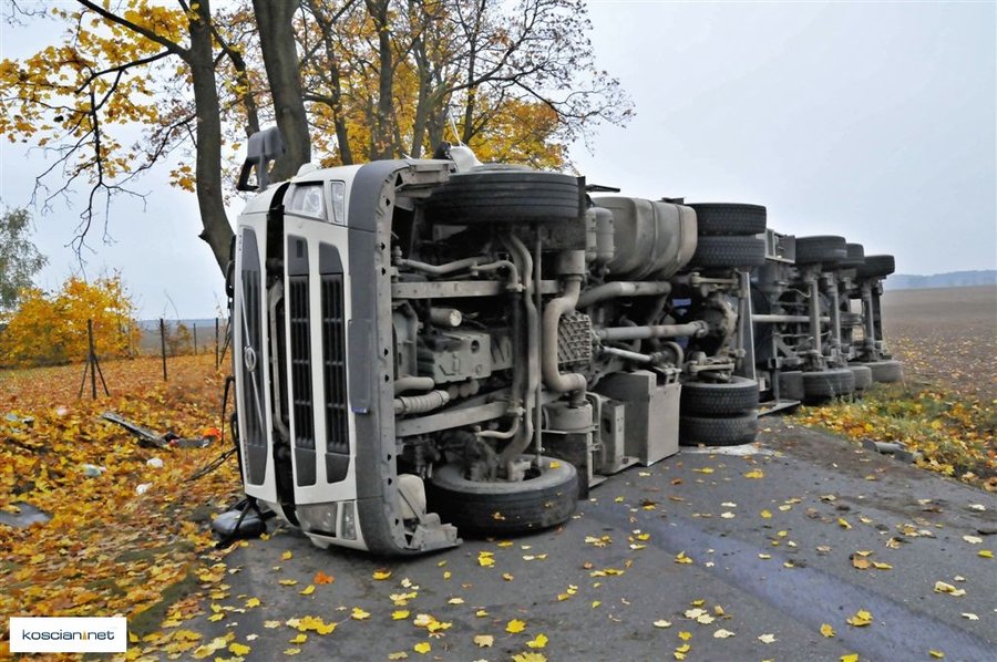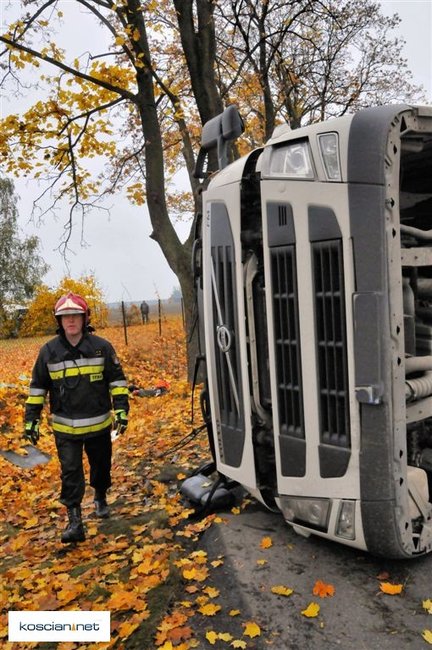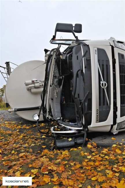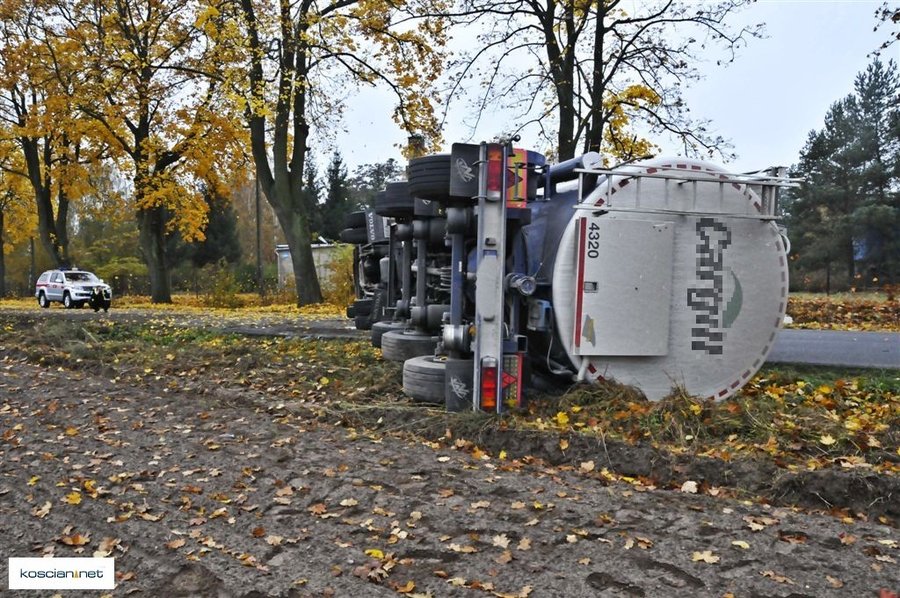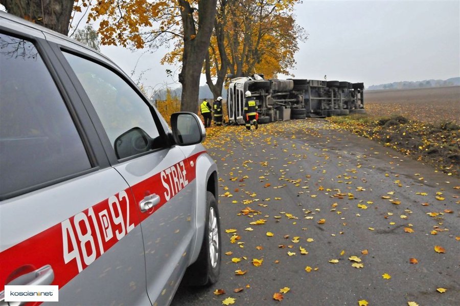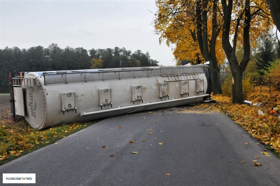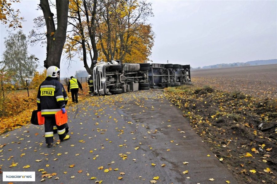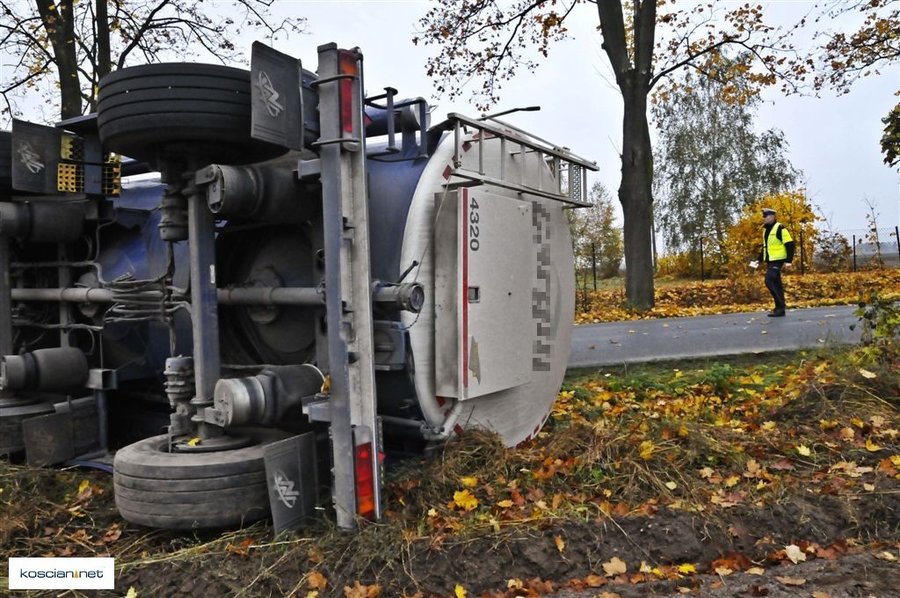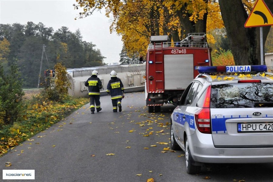 Do wypadku doszło około godziny 9.00. Załadowana do pełna cysterna z paszą przewróciła się i zablokowała drogę. W ciężarówce uwięziony został kierowca – 31-letni mieszkaniec powiatu zielonogórskiego. Ze zmiażdżonej kabiny wydobyli go strażacy z PSP Kościan. Na miejscu pracowały też zastępy ochotników z Turwi i Racotu. Trwa ustalanie okoliczności, w jakich doszło do wypadku.