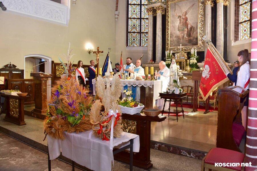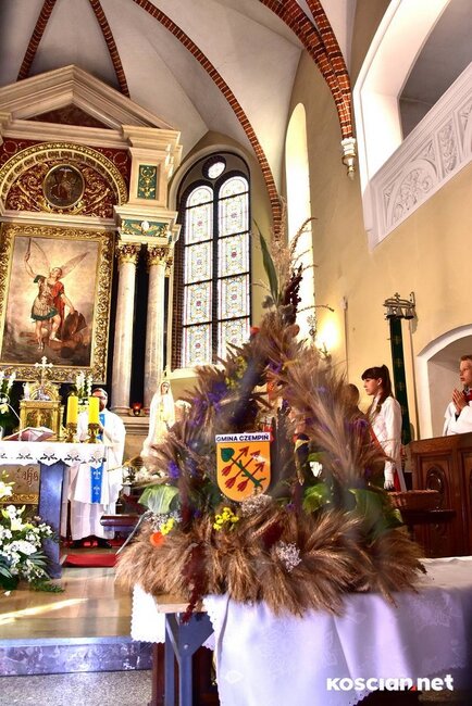 Mszą w intencji rolników i ojczyzny rozpoczęto w Czempiniu obchody gminno-parafialnych dożynek, Święta Wojska Polskiego i rocznicy zwycięskiej bitwy warszawskiej.