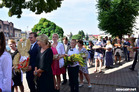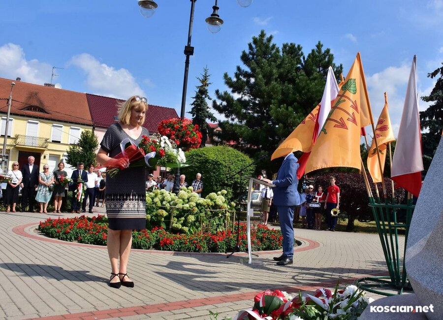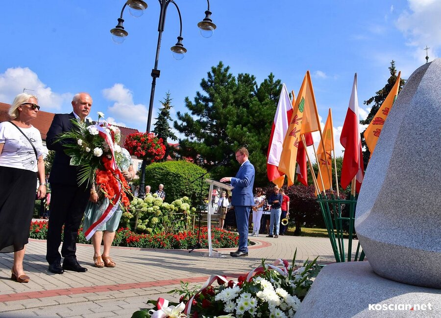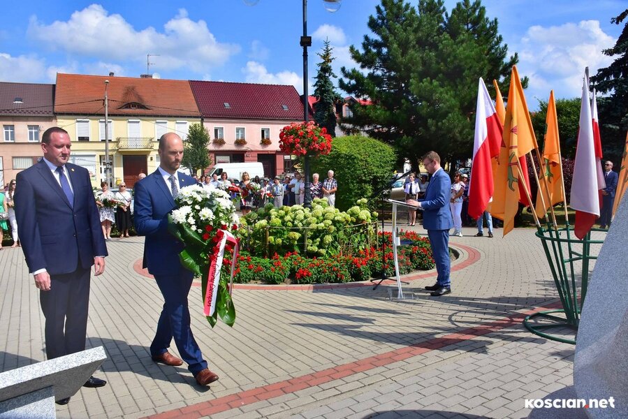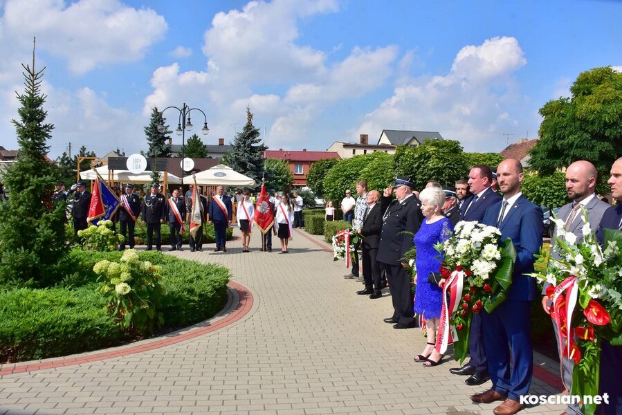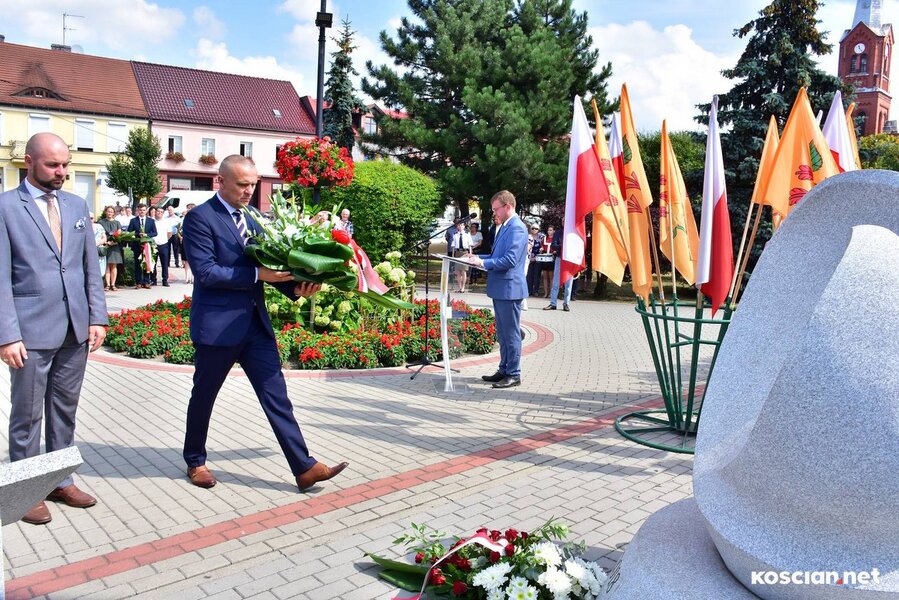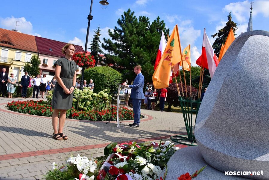 Po nabożeństwie na rynku odbyła się ceremonia składania wieńców i kwiatów pod pomnikiem pamięci