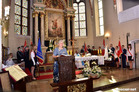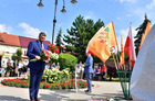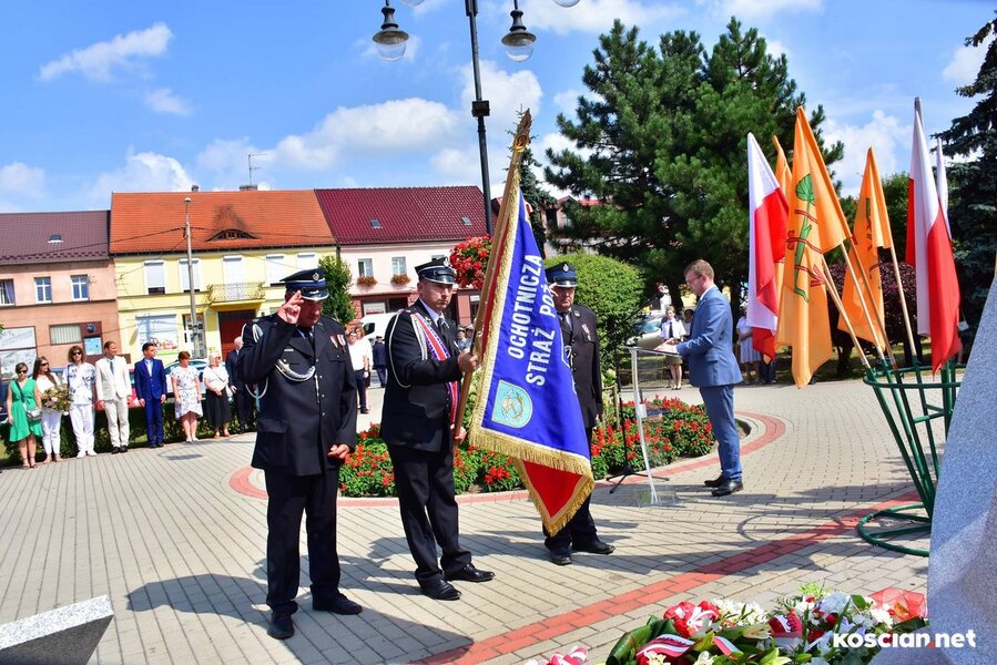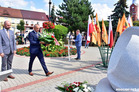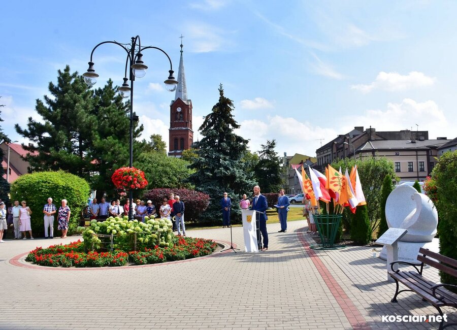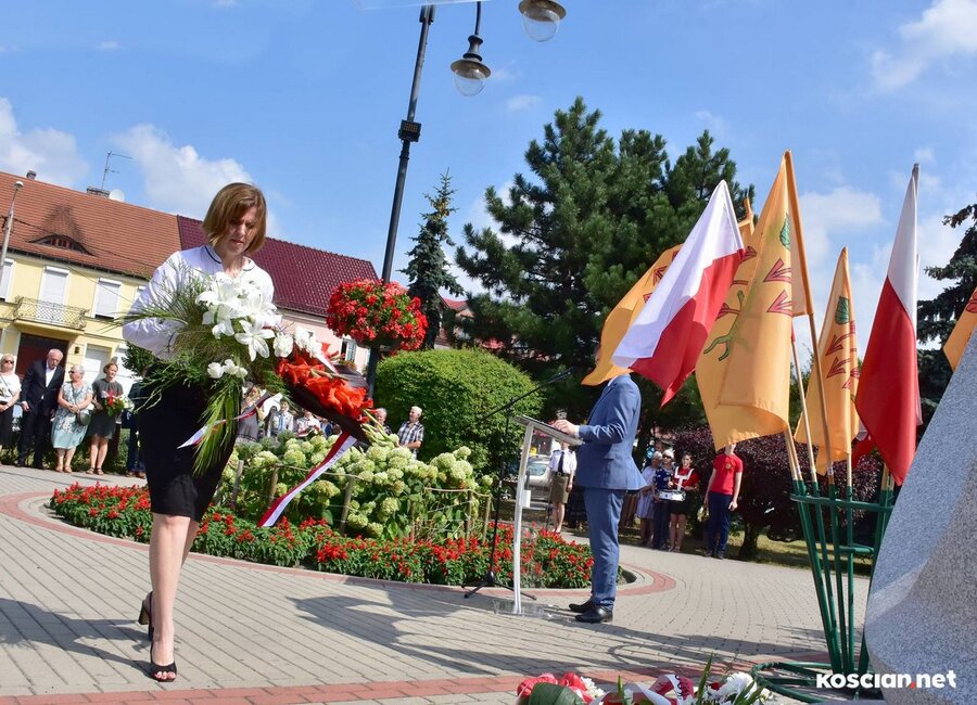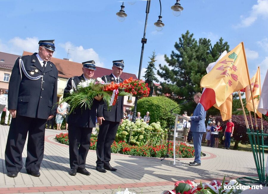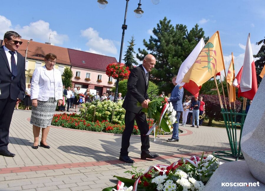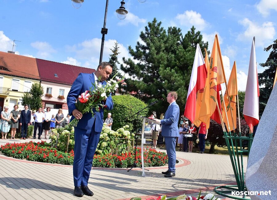 Po nabożeństwie na rynku odbyła się ceremonia składania wieńców i kwiatów pod pomnikiem pamięci