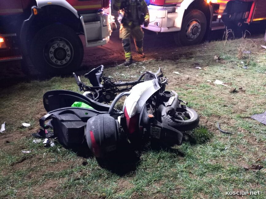 Kierującego skuterem przewieziono do szpitala na badania. Okoliczności zdarzenia bada kościańska policja.