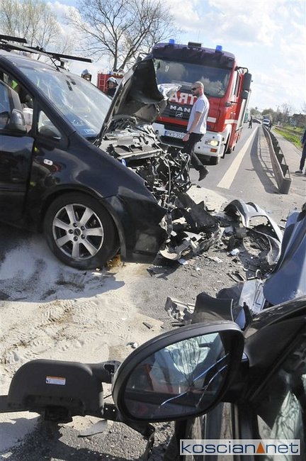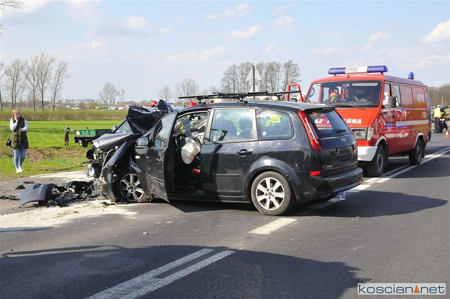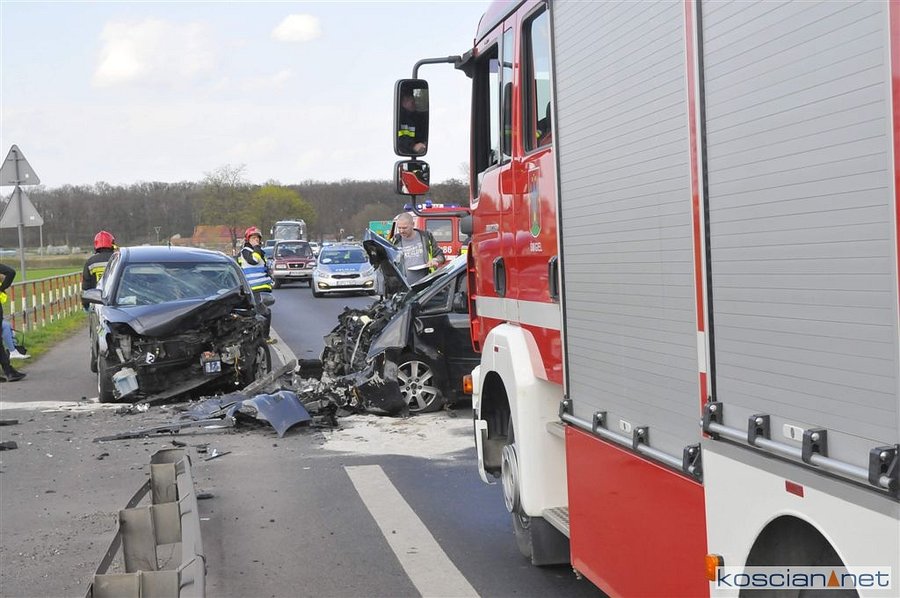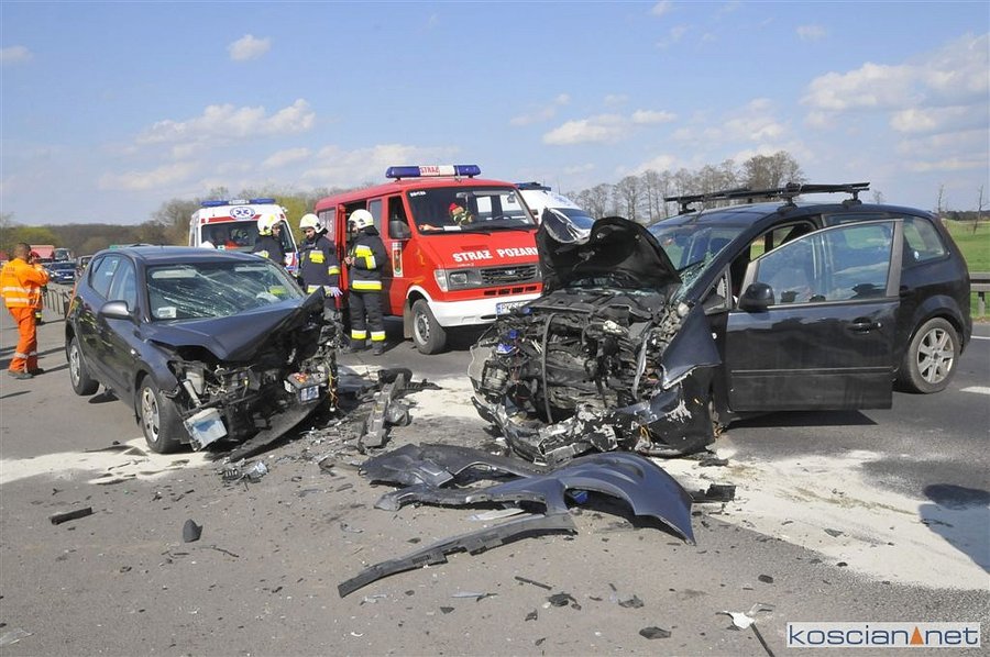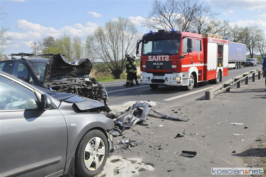 Około godziny 15.20, pomiędzy Glińskiem i Czaczem doszło do zderzenia trzech samochodów osobowych: forda c-max, hyundai i30 i peugeota 207. Jak wynika ze wstępnych ustaleń kierowca forda podczas wyprzedzania w niedozwolonym miejscu doprowadził do czołowego zderzenia z hyundaiem. W forda uderzył następnie peugeot, który nie zdążył zahamować. Dwie osoby podrózujące fordem i dwie z hyundaia przewieziono do szpitala. Okoliczności i przebieg zdarzenia wyjaśnia kościańska policja.