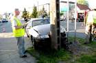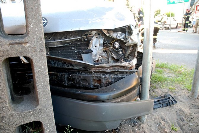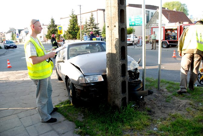 Do wypadku doszło w piątek 9 maja około godziny 18. Kierująca peugeotem kobieta nie ustąpiła pierwszeństwa przejazdu jadącemu od strony Kiełczewa oplowi. Po zderzeniu opel wjechał na chodnik i uderzył w słup.Fot. Bogdan Ludowicz
