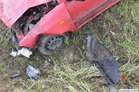 Pomiędzy Gryżyną i Nowym Dębcem dachował fiat punto.