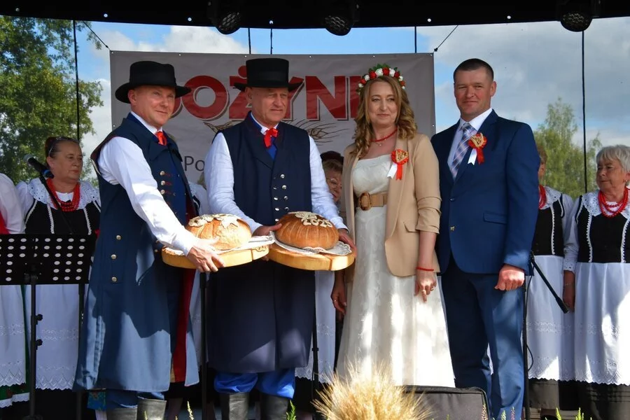 Po nabożeństwie odbyła się część obrzędowa – starostowie dożynkowi przekazali bochny chleba gospodarzom wydarzenia: wójtowi Andrzejowi Przybyle i staroście Arturowi Opasowi. Tradycyjny chleb został następnie podzielony wśród uczestników. W atmosferę święta wprowadzał występ zespołu „Kokorzynianki”, a nie mogło zabraknąć również symbolicznego obtańczenia wieńca.