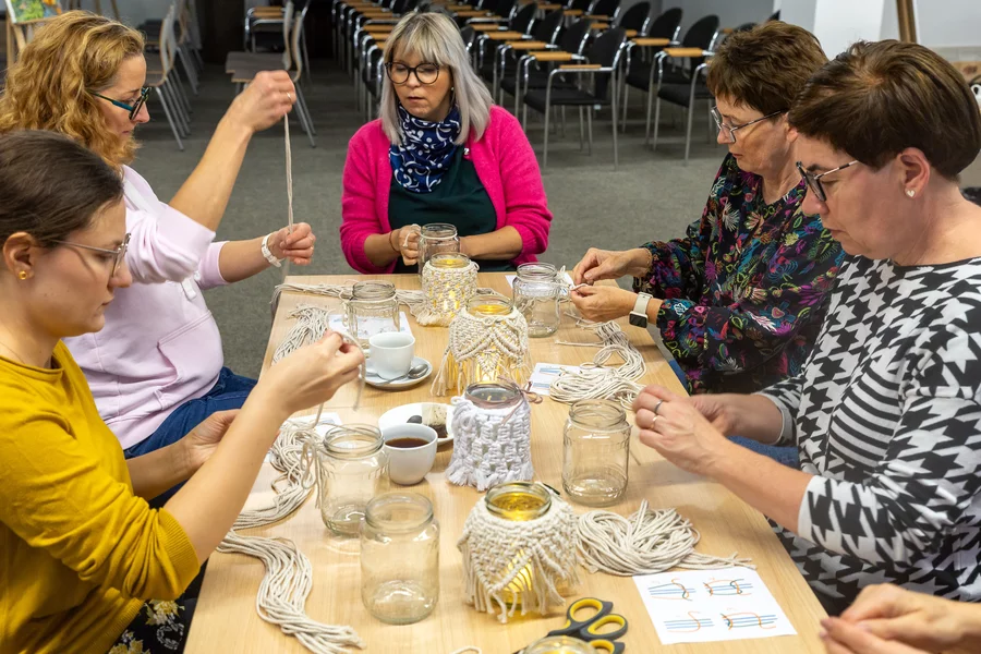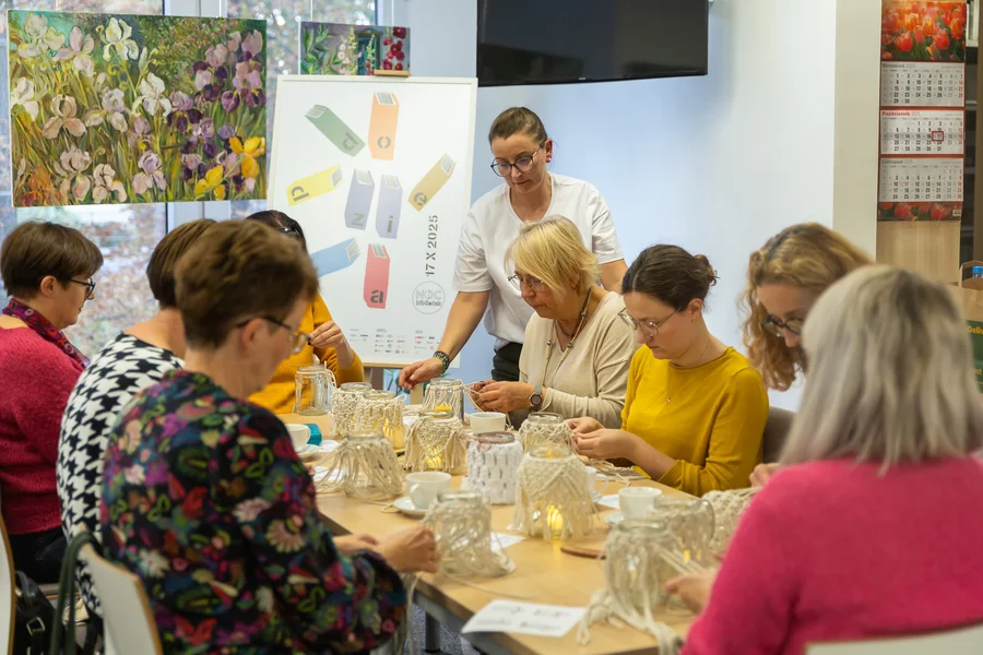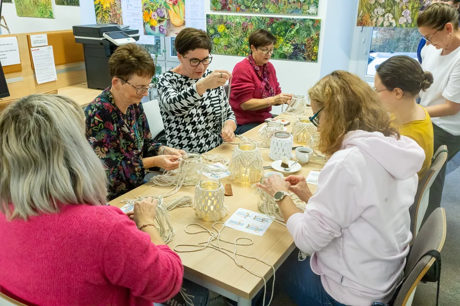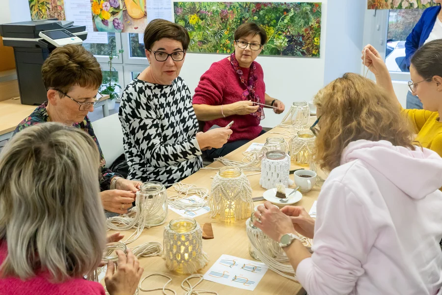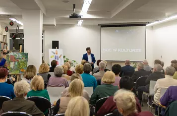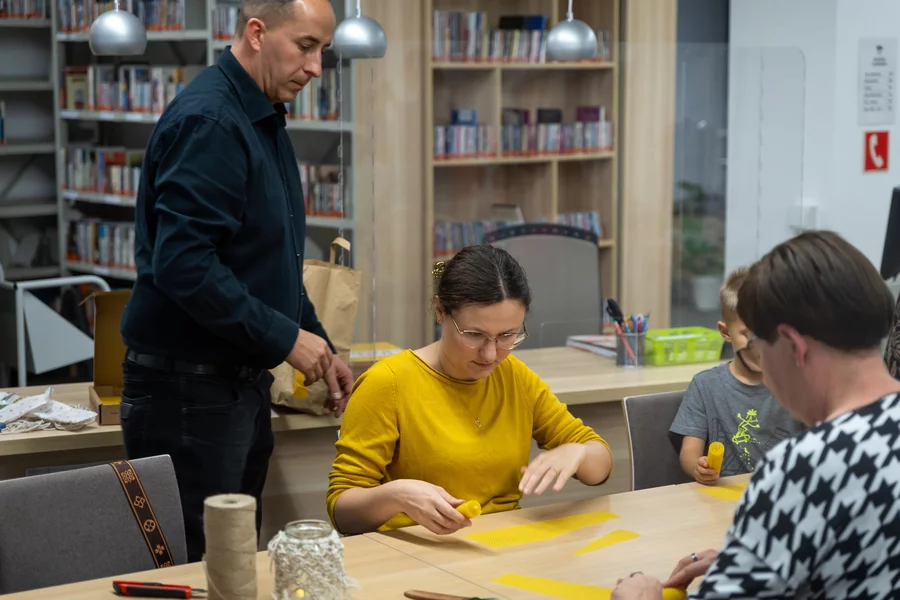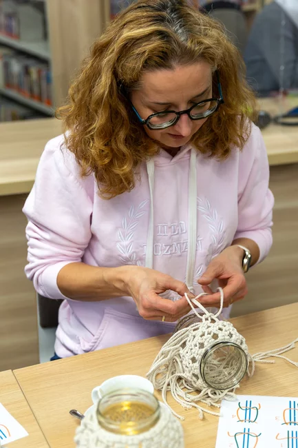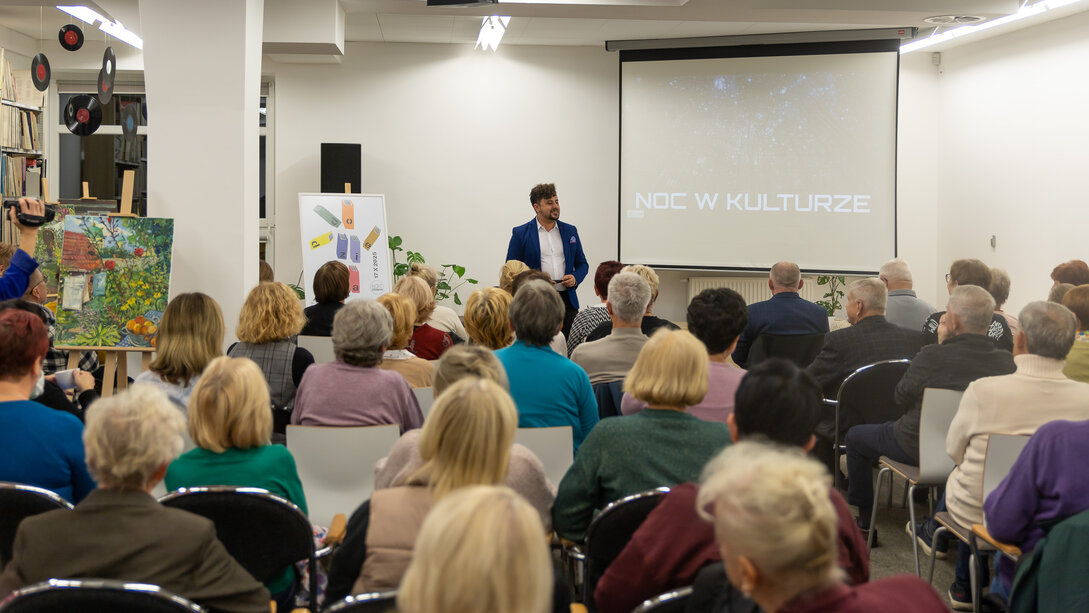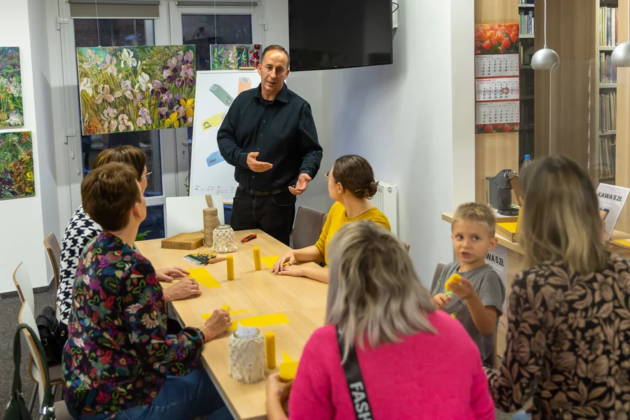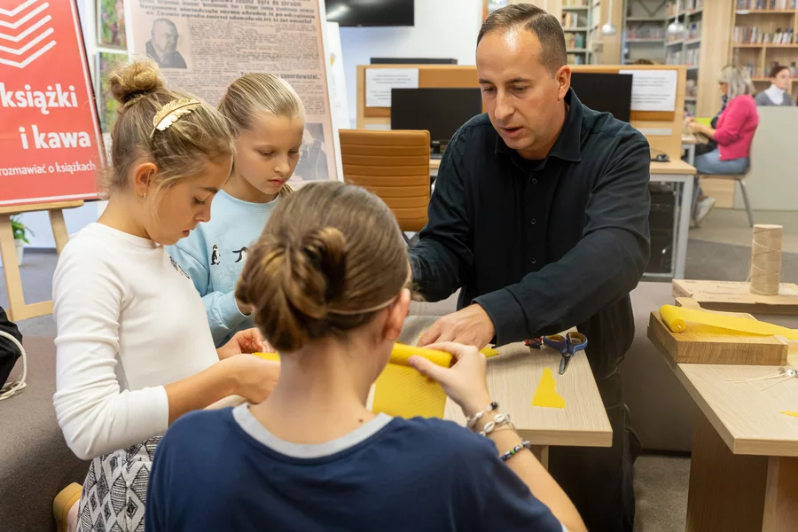 Dorośli natomiast mogli twórczo spędzić czas podczas warsztatów makramy prowadzonych przez bibliotekarki i wyrobu świec z wosku pszczelego, które poprowadził Szymon Ruskowiak z Pasieki Parkowej. Gość opowiadał również o życiu pszczół, dzieląc się swoją pasją i produktami z ula. W ramach Dyskusyjnego Klubu Książki rozmawiano o reportażu Cezarego Łazarewicza „Koronkowa robota”, a kulminacyjnym punktem wieczoru był wykład dr. Emiliana Prałata z cyklu „Z historią przy kawie”, zatytułowany „Noc w kulturze”. Był to inauguracyjny wykład jubileuszowego, dziesiątego sezonu wykładów doktora Prałata w kościańskiej bibliotece.