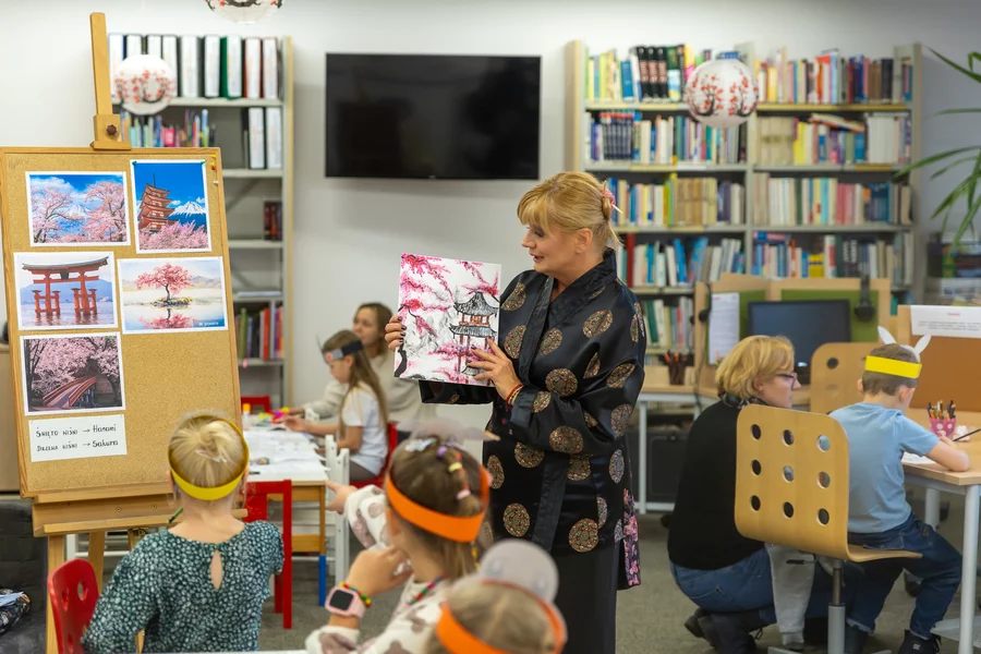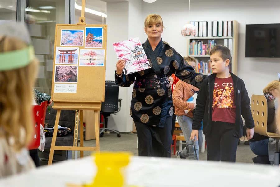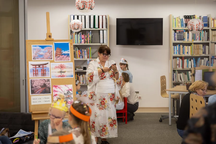 Dzieci przeniosły się do Kraju Kwitnącej Wiśni podczas wydarzenia „Noc pod kwitnącą wiśnią”. Uczestnicy wędrowali „w tabi po Japonii”, rozwiązując zagadki i zadania, a zdobyte „kwiaty wiśni” wymieniali na drobne nagrody. Sporo emocji przyniosły warsztaty plastyczne inspirowane japońską kulturą, a dzień zakończył pokaz filmu „Biuro detektywistyczne Lassego i Mai. Rabuś z pociągu”.