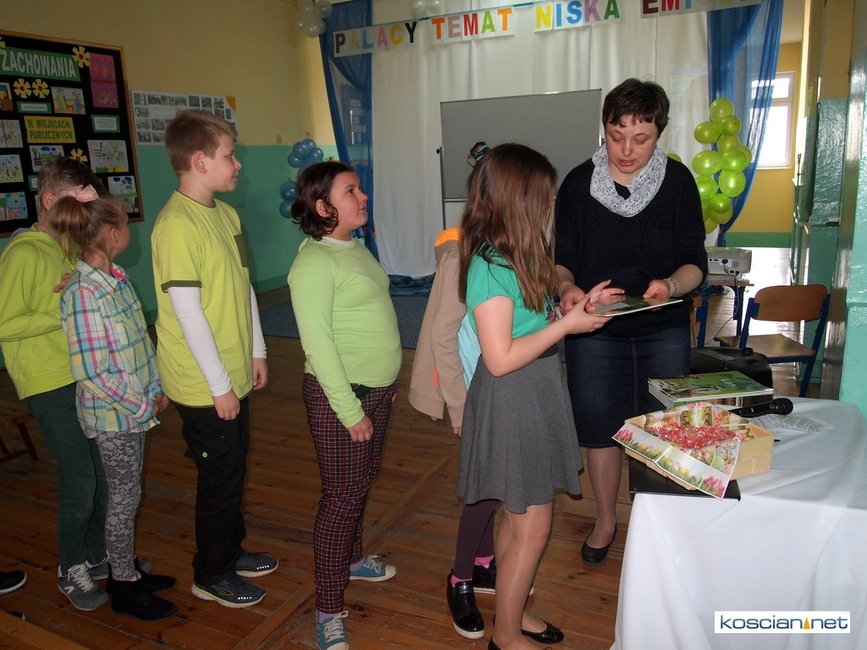 Podczas eko-tygodnia poprzedzającego Dzień Ziemi uczniowie klas starszych wykonali gazetki ścienne o odnawialnych źródłach energii oraz przygotowali prezentacje multimedialne na temat niskiej emisji. Dzieciom młodszym zaprezentowano na ten temat krótki film. Odbyły się także konkursy plastyczne. W klasach I – III pod hasłem „Dbamy o czyste powietrze”, w klasach IV – VI „Palący temat – Niska emisja”.