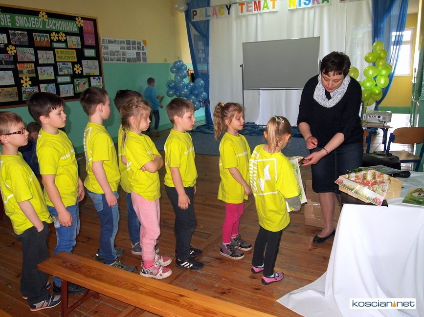 Na zakończenie obchodów Dnia Ziemi pan Zbigniew Mikołajczak wręczył zwycięzcom nagrody książkowe ufundowane przez Nadleśnictwo Kościan. Wszyscy uczniowie otrzymali zeszyty ekologiczne „Las”, a przedszkolaki upominki książkowe dla każdej grupy.