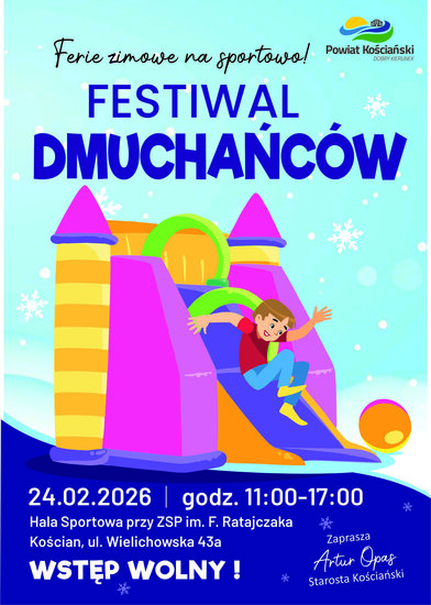 Zabierzcie wygodny strój, buty na zmianę (lub skarpetki), dobry humor i wpadajcie wyszaleć się na dmuchanych zamkach i zjeżdżalniach. To idealna okazja, by spędzić Ferie zimowe na sportowo z Powiatem Kościańskim!