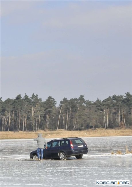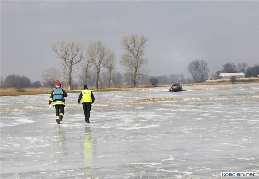 Na rozlewiskach w okolicach Kurzej Góry załamał się lód pod jeżdżącym po łąkach fordem. Obserwator tego zdarzenia wezwał służby ratownicze. Zgodnie z procedurami strażacy wysłali na miejsce zastęp ze sprzętem do działań na wodzie i lodzie. Kierowca odmówił pomocy i zapewnił, że sam wyciągnie auto.