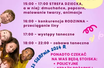Festyn odbył się na placu zabaw. Dla gości przygotowano strefę dziecka, stoiska policji i straży pożarnej, zabytkowe samochody, stoiska gastronomiczne. Wydarzenie zakończyła zabawa taneczna.