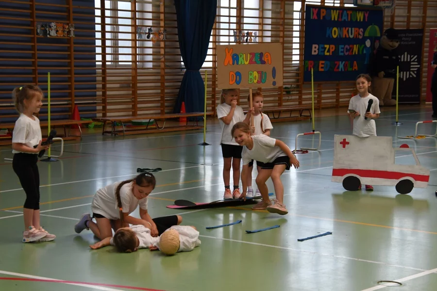 Podczas konkursu przedszkolaki zaprezentowały swoje drużyny w przygotowanych scenkach, gdzie musiały zaprezentować swoje zdolności artystyczne i zdobytą wiedzę z zakresu bezpieczeństwa. Wiadomości dzieci na ten temat zweryfikowała także przygotowana przez organizatorów krzyżówka, którą przedszkolaki musiały rozwiązać. Ostatnim zadaniem były konkurencje sportowe.