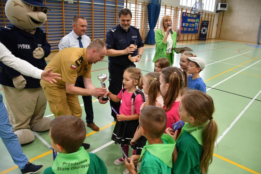 Nagrody wraz ze współorganizatorami wręczał dzieciom starosta Artur Opas. Zwycięzcy odebrali pamiątkowy, ufundowany przez Komendanta Państwowej Straży Pożarnej w Kościanie puchar, maskotkę oraz dyplom. Wszystkie pozostałe drużyny odebrały nagrody ufundowane przez Starostwo Powiatowe w Kościanie i gminy powiatu. Do dzieci trafiły także upominki ufundowane przez Komendę Powiatową Policji i Nadleśnictwo Kościan.