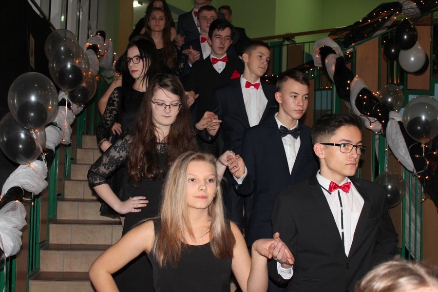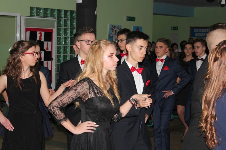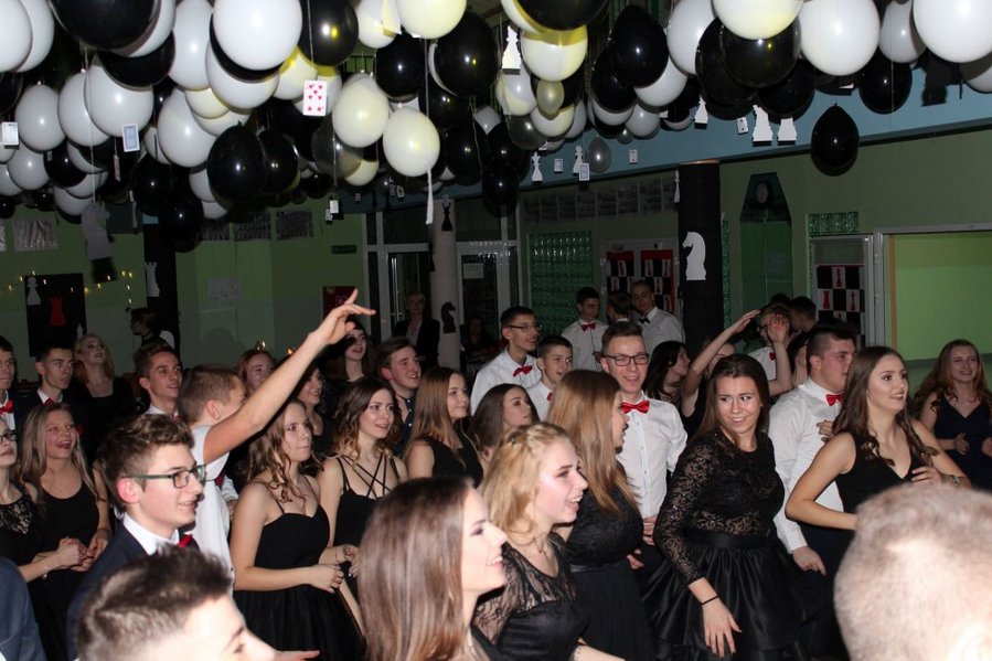 Imprezę rozpoczęto staropolskim polonezem. Pierwszy taniec przygotowano pod okiem nauczycieli wychowania fizycznego: Terasy Mikołajczak-Dudy i Marcina Marszewskiego. Tej nocy królowała czerń. W dekoracji dominowały elementy szachownicy.