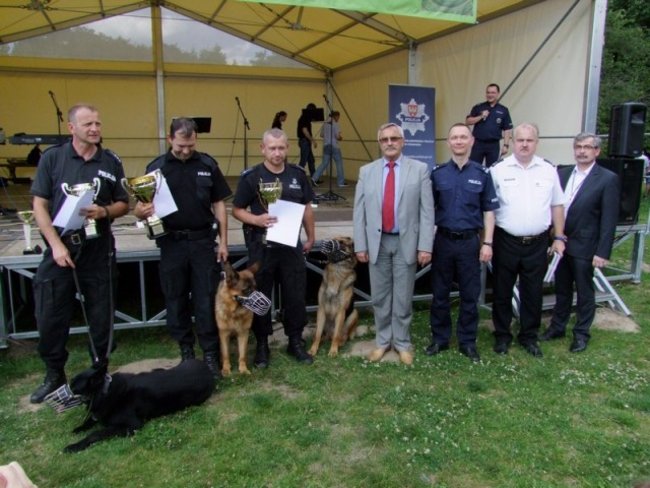 St. asp. Paweł Banaszak wraz ze swoim psem Grandem zajął trzecie miejsce na rozegranym w Szreniawie XIV Wojewódzkim Finale Kynologicznych Mistrzostw Policji.