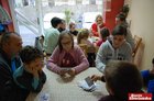 Zagrać można było w godz. 17.30-20. Szybko wszystkie stoły zostały zajęte. Do wyboru były gry o różnym stopniu trudności, m.in. Summoner Wars, Factory of Ideas, Munchkin’a, Rune Age. Do każdej mogło siąść sześć osób. Dzieci z ochotą nauczyły się grać w karciane Prosiaki i Jungle Brunch. Pan Marek cierpliwie tłumaczył wszystkim zasady. Pierwszoklasistom udało się namówić do wspólnej zabawy rodziców. Przy jednym stole zgromadzili się dorośli, którzy wybrali też coś dla siebie. Gry jedna gra się znudziła, można było ją zmienić na inną. Uczestnicy podkreślali, że to świetny sposób na spędzenie wieczoru i nauczenia się czegoś nowego.