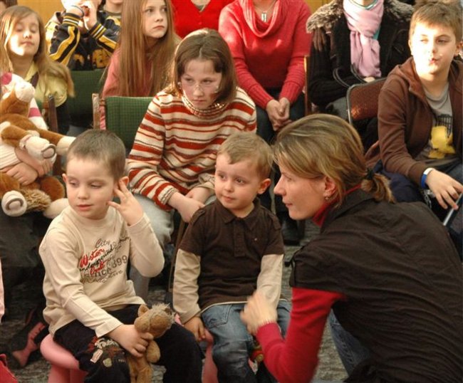 Później na honorowe miejsce zaproszono Irenę Łuczak. Kolekcjonerka zaprezentowała swoje ulubione zabawki. Dzieciom najbardziej spodobał się śpiewający i tańczący świstak. Najmłodsi uczestnicy spotkania zasypali gościa pytaniami. (h)