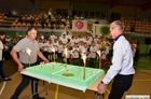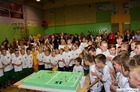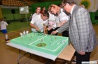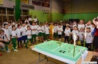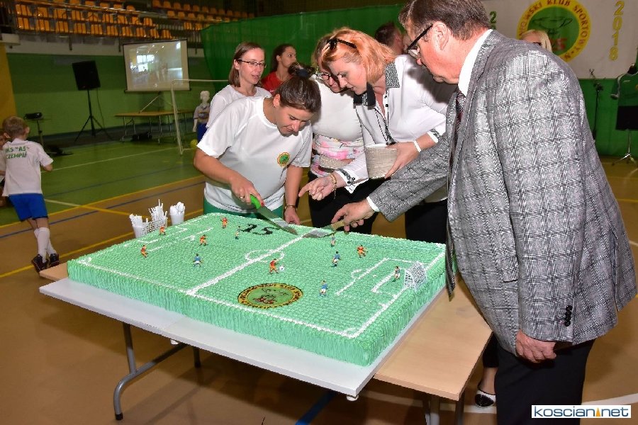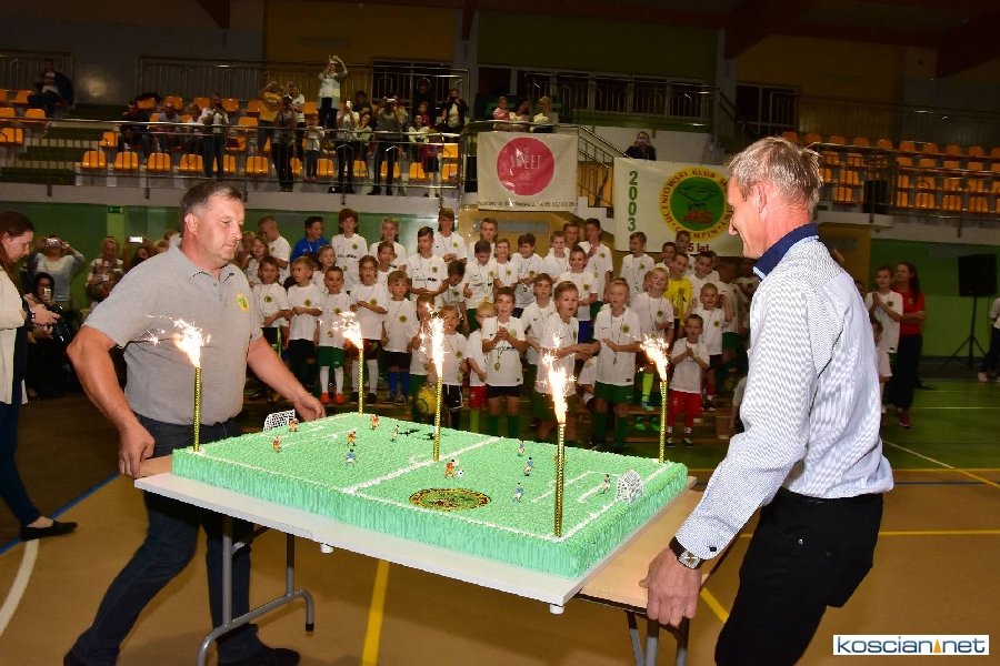 Nie mogło zabraknąć urodzinowego tortu w kształcie piłkarskiego boiska. Przed jego pokrojeniem młodzi zawodnicy spontanicznie zaśpiewali gromkie „Sto lat”.