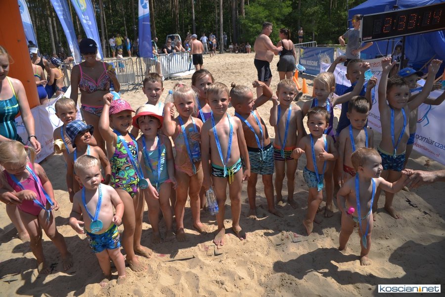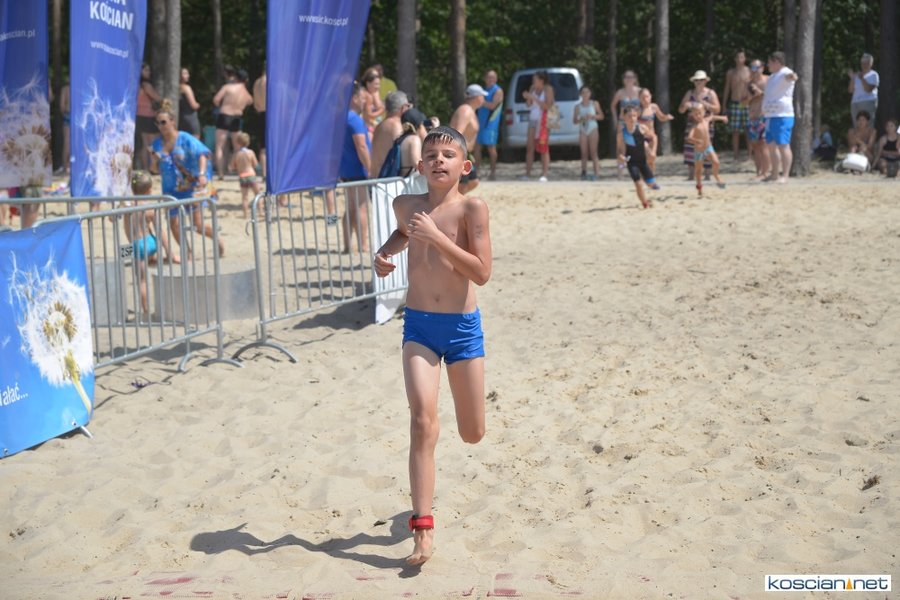 W aquathlonie wystartowało 64 dzieci. Jako pierwsi na trasę ruszyli najmłodsi do 6 lat, którym w brodzeniu w wodzie i biegu pomagali rodzice. Następnie rywalizowali pływacy w wieku 7-10 lat i 11-15 lat.