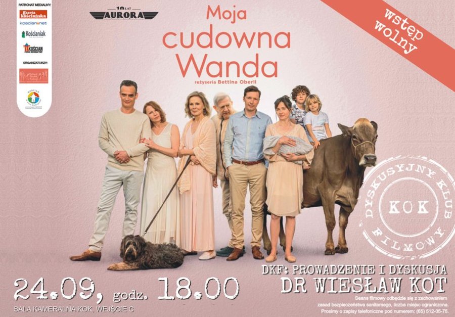 W najbliższy piątek Kościański Ośrodek Kultury zaprasza na kolejny seans w ramach Dyskusyjnego Klubu Filmowego. Tym razem Wiesław Kot zaprezentuje szwajcarski komediodramat „Moja cudowna Wanda”. To opowieść o szacownej i zamożnej rodzinie Wegmeister-Gloor, która potrzebuje opieki dla schorowanego nestora rodu. Zadania tego podejmuje się 35-letnia Polka imieniem Wanda, w tej roli elektryzująca Agnieszka Grochowska. Kobieta opiekuje się wiekowym Josefem, spędzając sporo czasu z jego rodziną w pięknej willi nad jeziorem. Nikt nie spodziewa się, że ta niewinna sytuacja rozwinie się w eksplodującą emocjami i wydarzeniami historię.