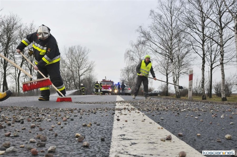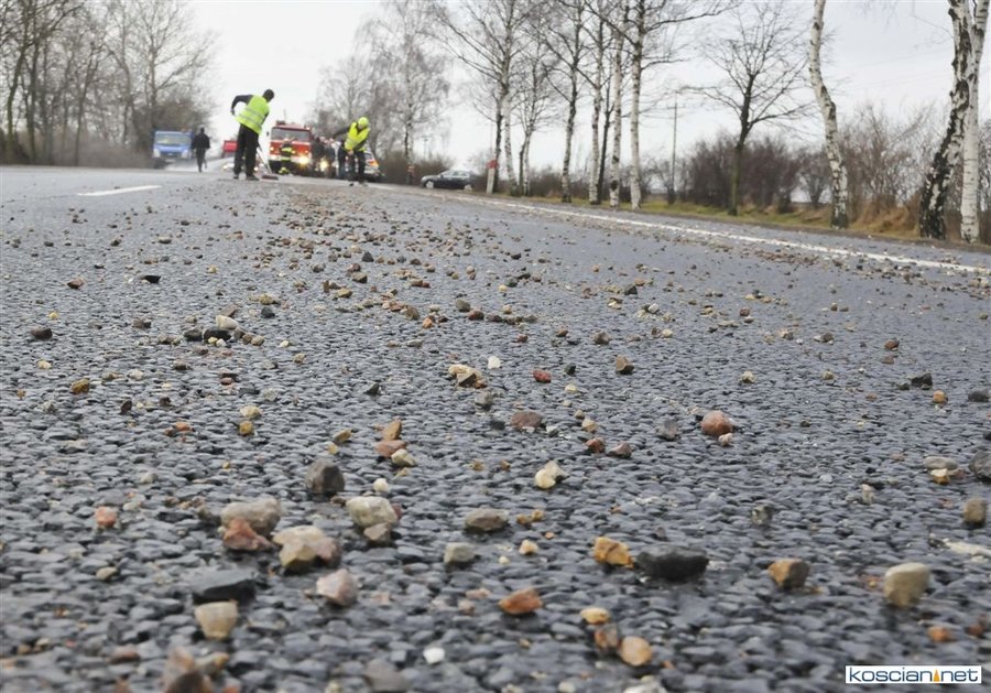Do czasu usunięcia kruszywa ruch kierowano objazdami. Kamienie usunęli z drogi strażacy z PSP Kościan, OSP Czacz, OSP Stare Bojanowo i OSP Śmigiel.