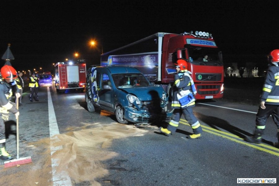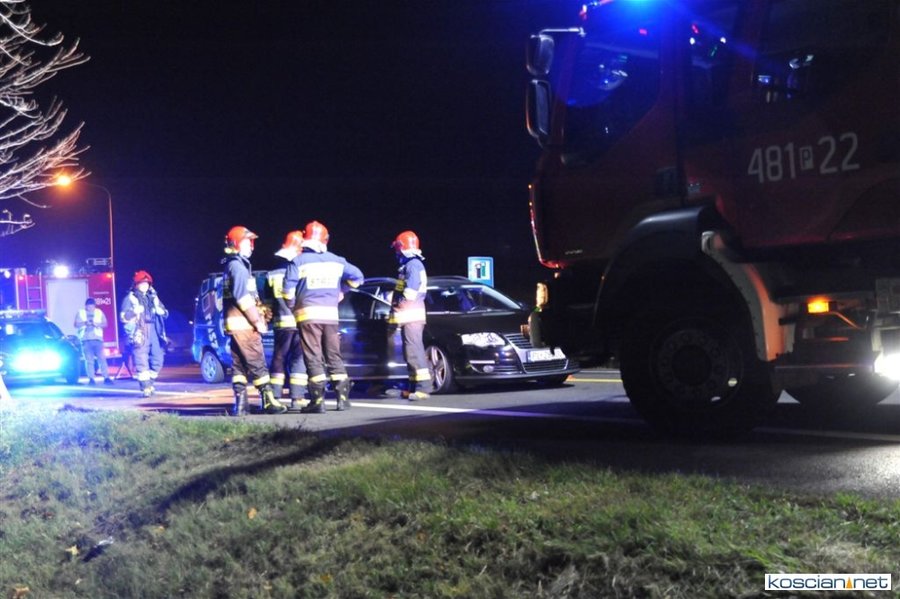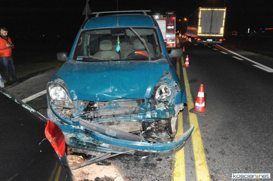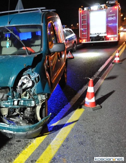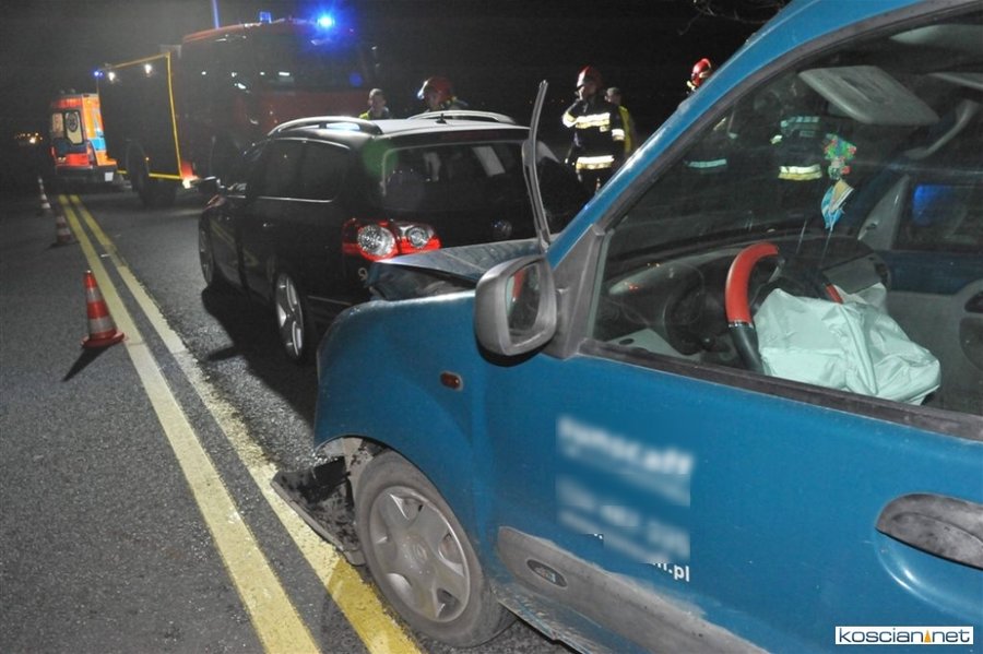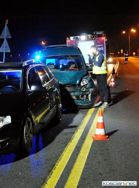 Do kolizji doszło w niedzielę, 20 października, około godziny 22.15 na obwodnicy Kościana w pobliżu stacji paliw Total. W miejscu, w którym ruch odbywa się wahadłowo, renault kangoo prowadzone przez 35-letniego Ukraińca, najechało na tył volkswagena passata, które stało na czerwonym świetle. Badanie zawartości alkoholu w wydychanym powietrzu przeprowadzone u sprawcy kolizji wykazało 2,16 promila. To już trzecie zdarzenie w tym miejscu w ciągu miesiąca.
