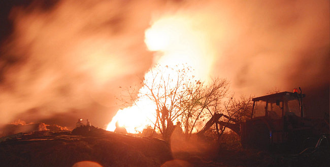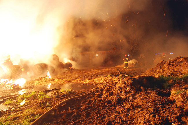 Ogień zauważono około godziny 22. Pożar gaszono do prawie do trzeciej w nocy, pogorzeliska pilnowano do rana. Spłonęło 240 balotów słomy. Straty wstępnie oszacowano na 7 tysięcy złotych.Ponieważ przez cały dzień padał deszcz strażacy podejrzewają, że pożar nie był dziełem przypadku. Ktoś podpalił stóg celowo.