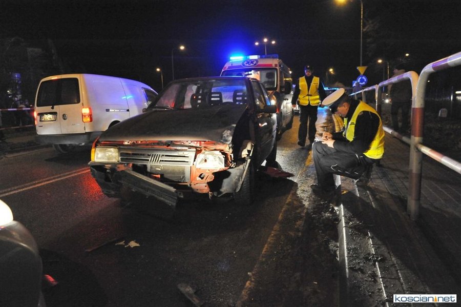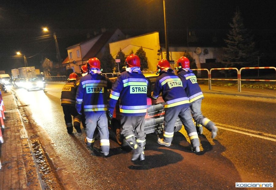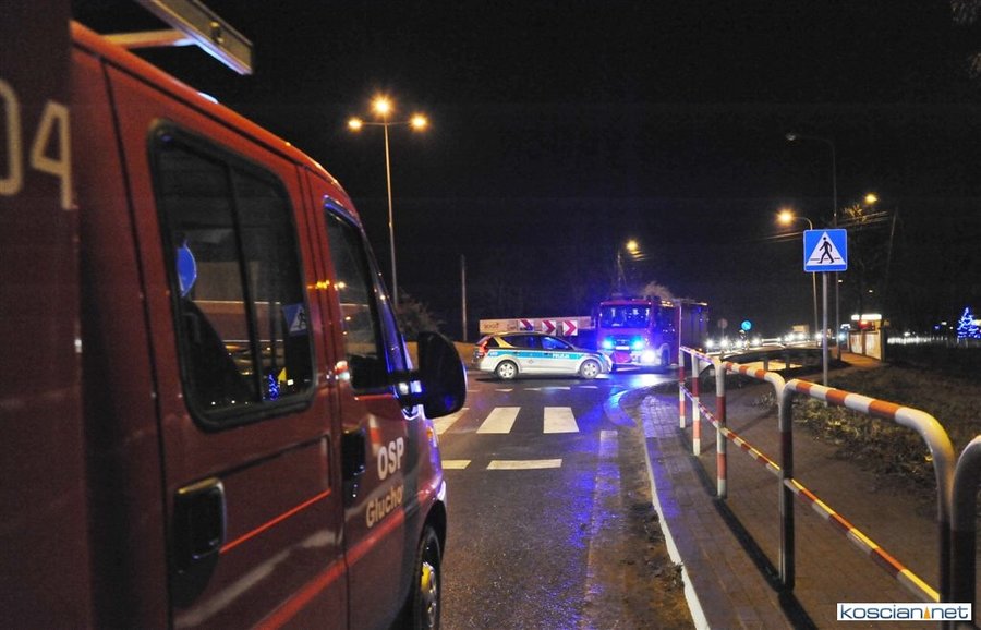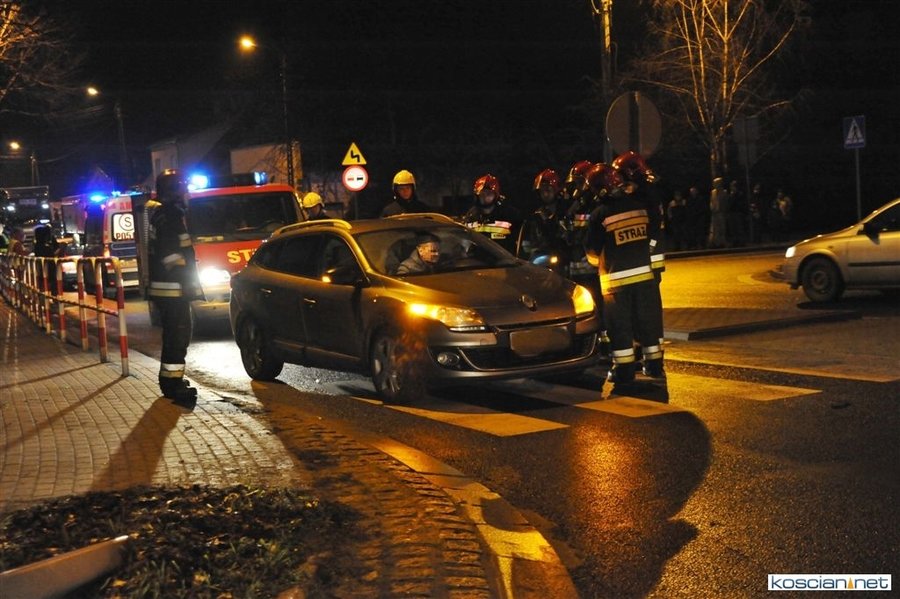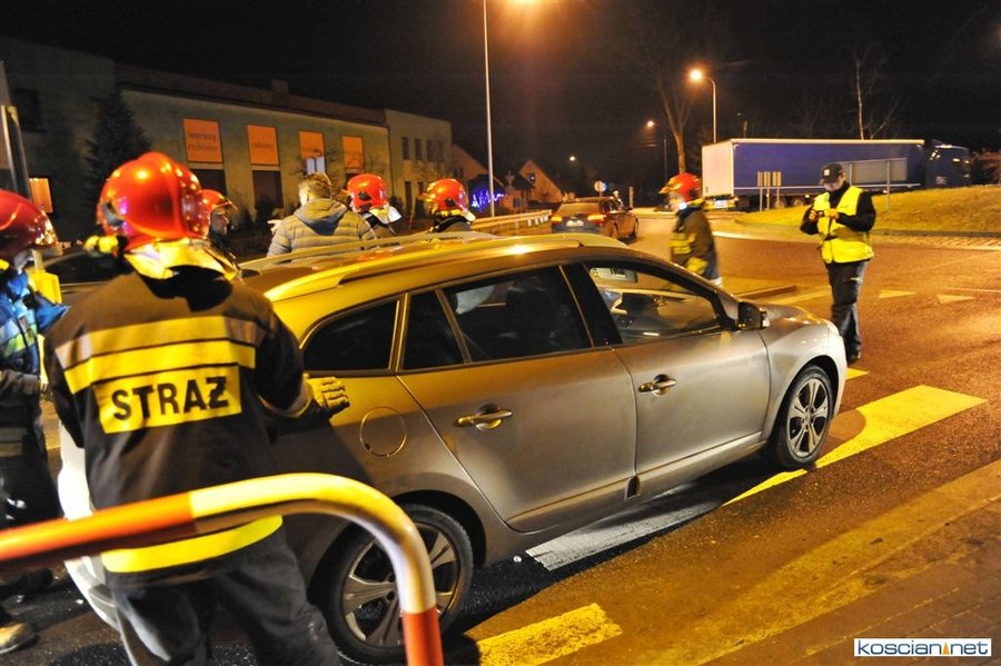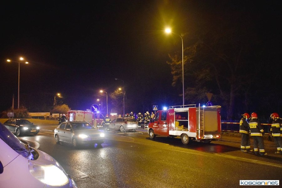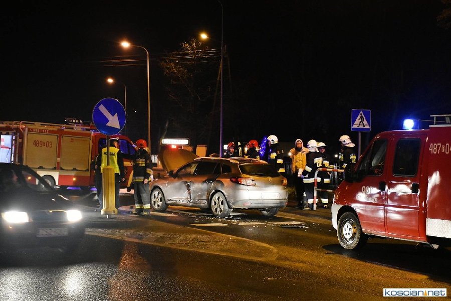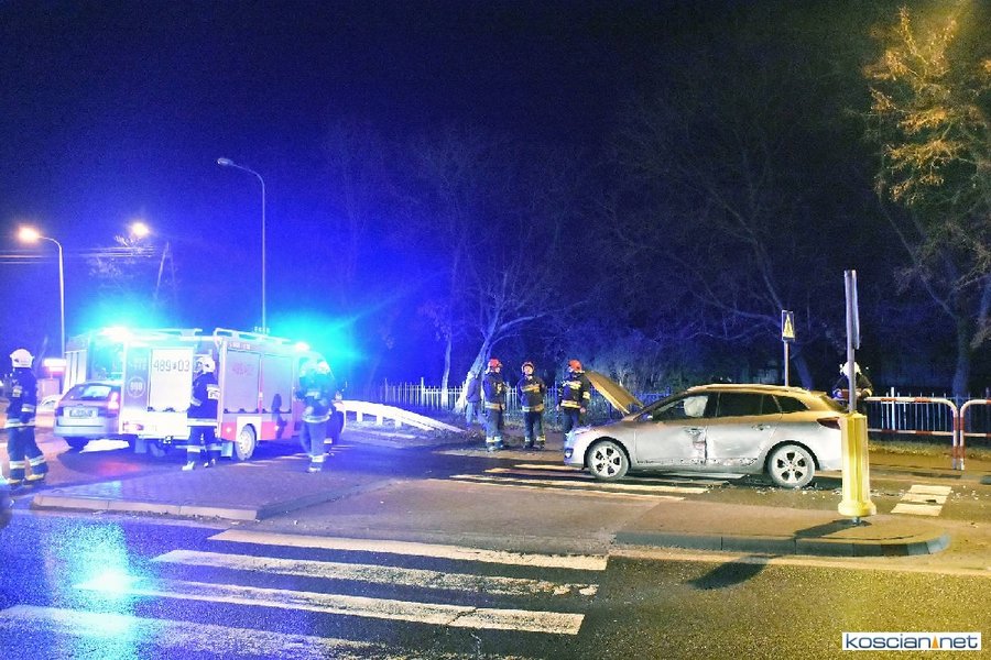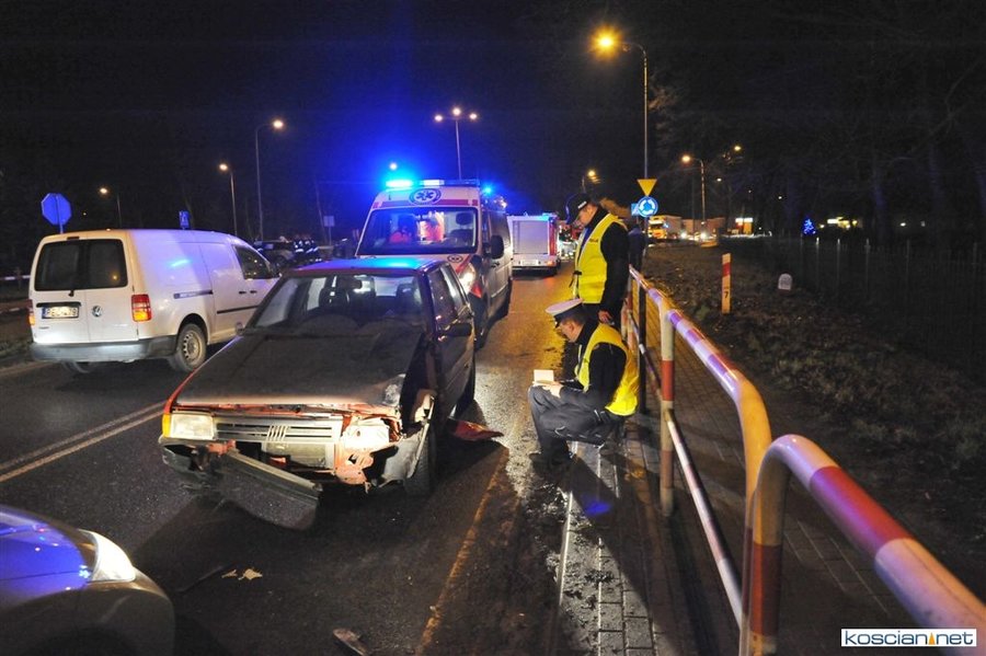 Do zdarzenia doszło wczoraj (21.12.2017) przed godziną 17. Wyjeżdżający z ronda w kierunku Poznania fiat uno przejechał wysepkę grodziową i uderzył w bok renault megane, jadącego w kierunku Kościana. Fiat kontynuując jazdę przeciwległym pasem doprowadził do czołowej kolizji z hondą. Z uwagi na małą prędkość pojazdów tylko jedna osoba uczestnicząca w kolizji doznała lekkich obrażeń.