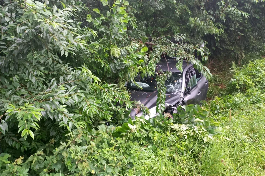 Siła uderzenia była na tyle duża, że renault wypadł z jezdni i zatrzymał się w przydrożnym rowie. Na miejsce skierowano służby ratunkowe – policję, straż pożarną z jednostki zawodowej oraz ochotników.