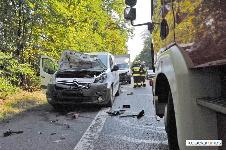 Na krajowej piątce, pomiędzy Wydorowem a obwodnicą Śmigla, zderzyły się auta jadące w kierunku Kościana.