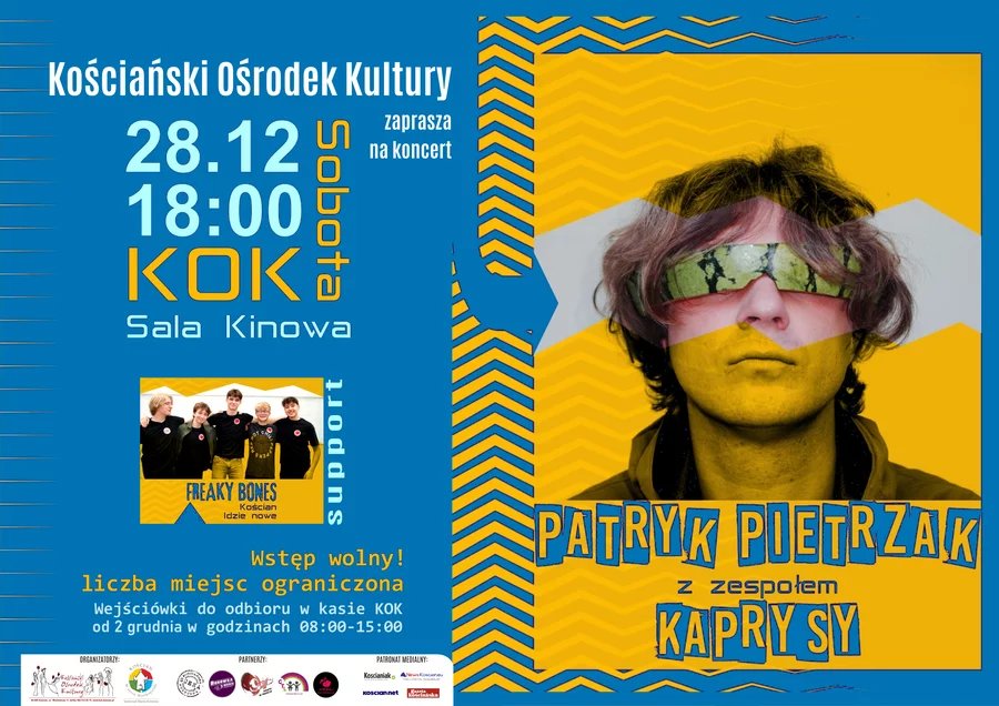 Fotorelacja z koncertu Patryka Pietrzaka z zespołem Kaprysy i kościańskiej grupy FREAKY BONES.